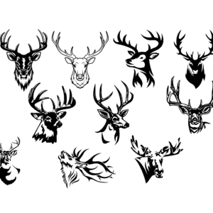 Deer Head Silhouette SVG Bundle – 10-Pack Hunting Buck Antler Vectors – Wildlife Stag Graphics for CNC, Laser Engraving, and Vinyl Cutting – Design for Cricut & Silhouette – Instant Digital Download