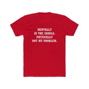 Mentally In The Saddle T-Shirt – Funny Horse Rider Quote Tee – Equestrian Humor Graphic Shirt – Physically Not My Problem Horse Lover Gift Unisex Tee Shirt Premium Fitted 100% Cotton