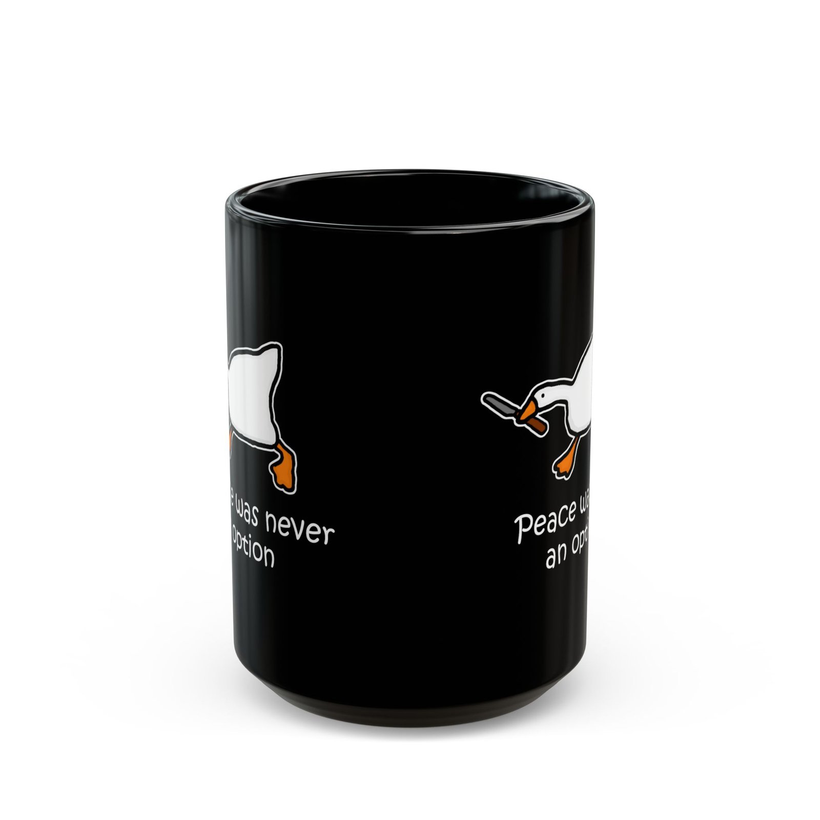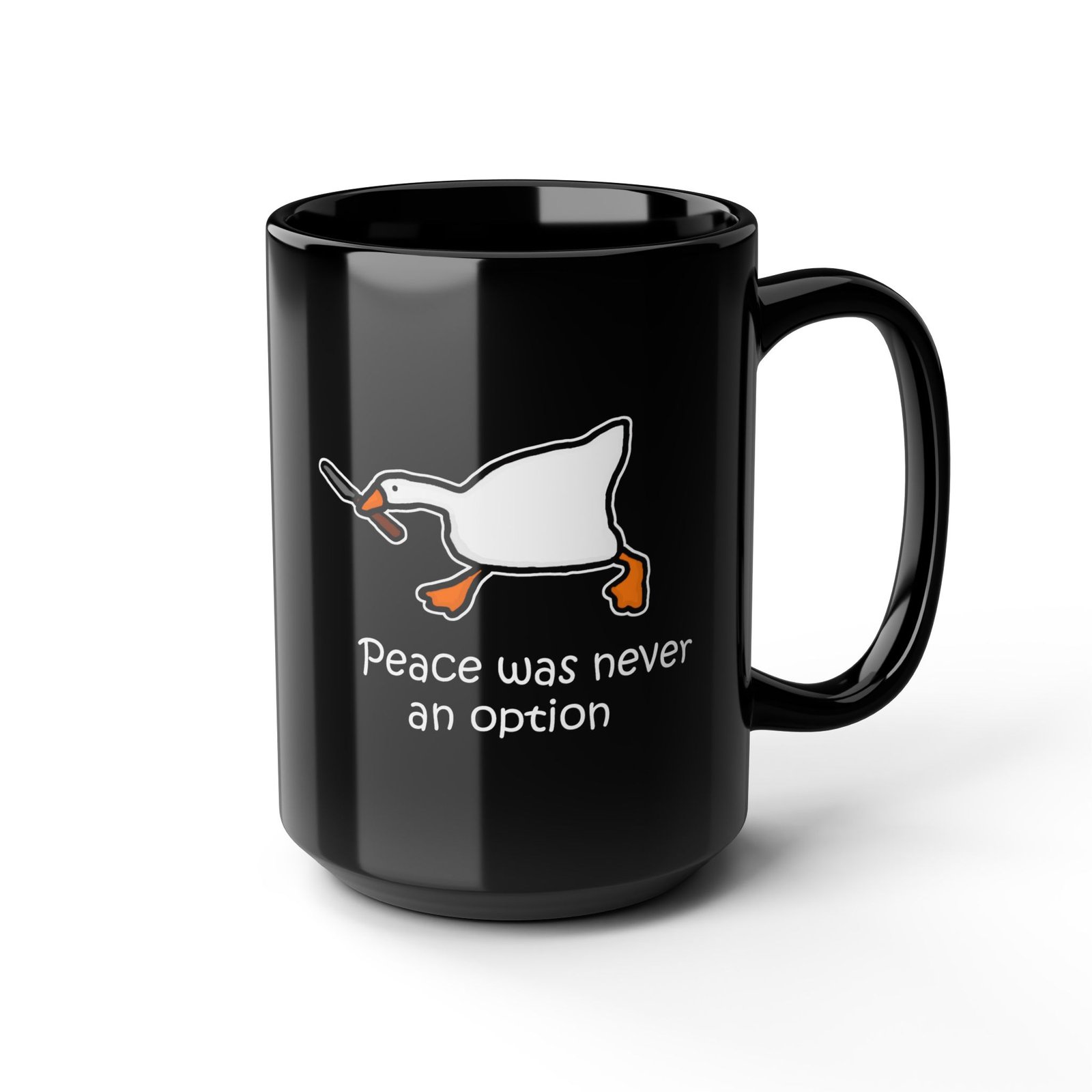 goose meme mug, peace was never an option tee, funny bird shirt, knife goose cup, gamer humor apparel, sarcastic graphic tee, black unisex mug, internet meme mug