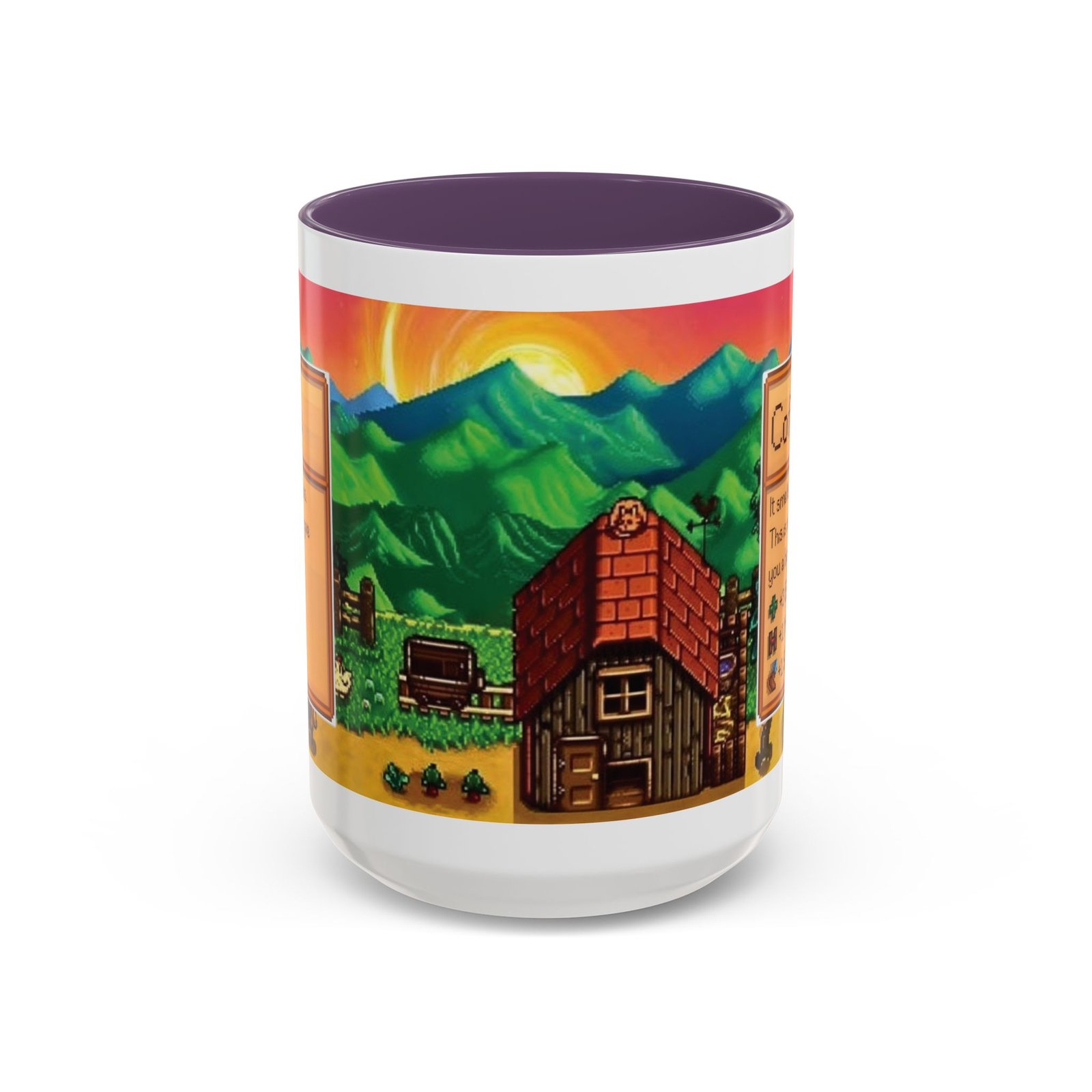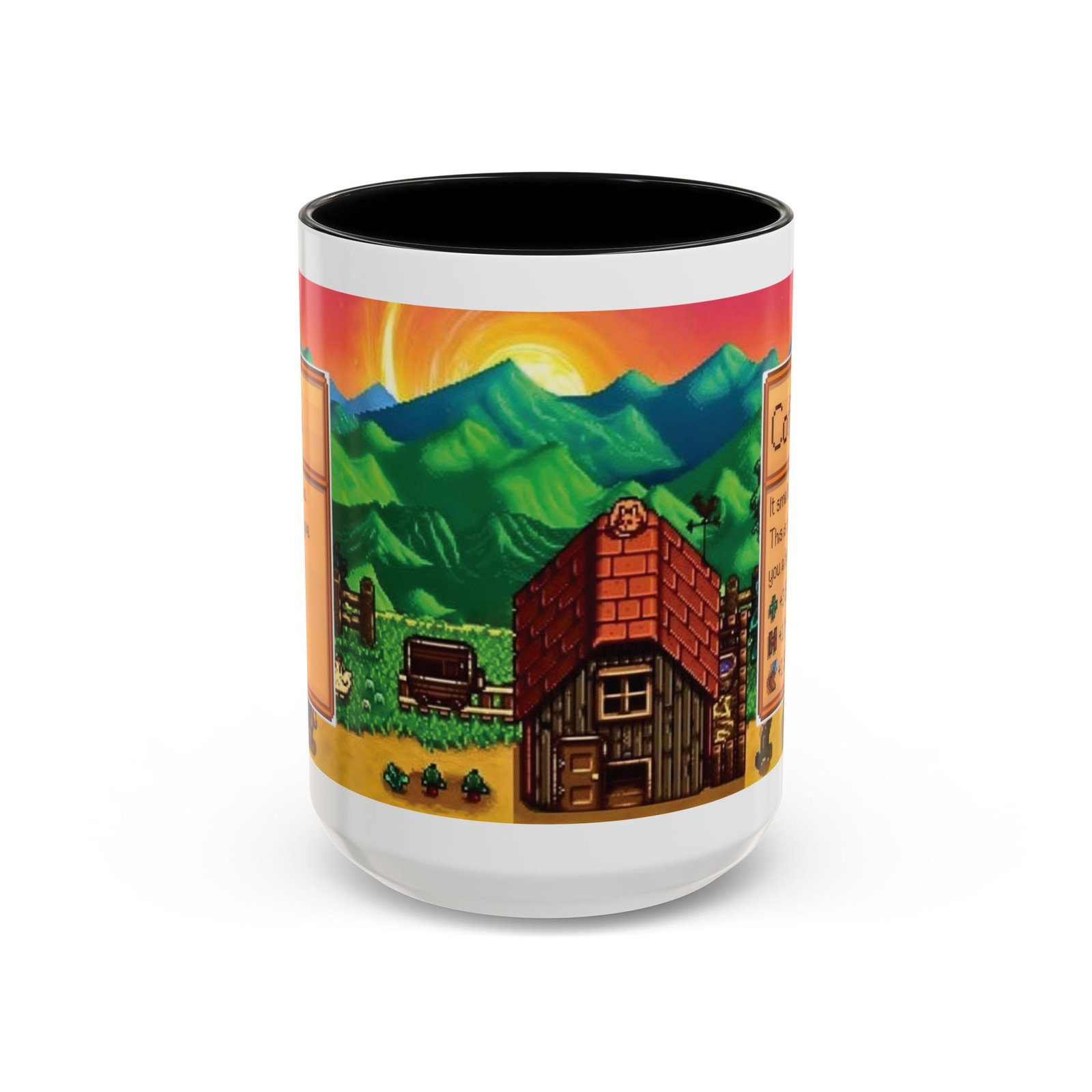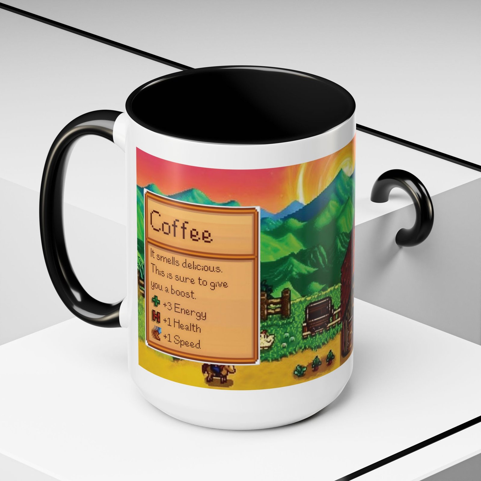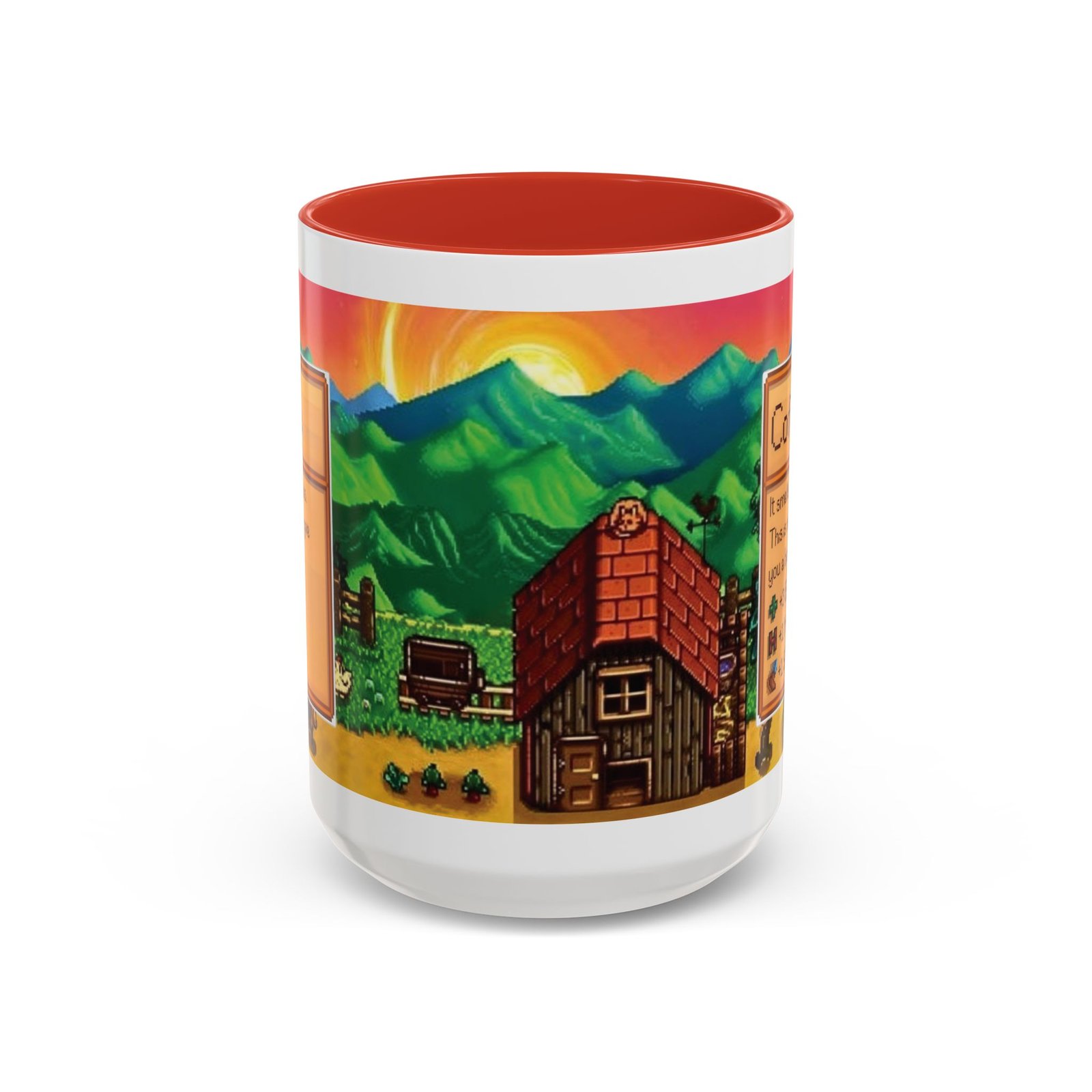 15oz Stardew Valley Inspired Coffee Mug – 15oz Ceramic Gamer Cup with Red Handle – Pixel Art Farm Decor & Video Game Gift Coffee Mug with Premium Quality Two-Tone Ceramic Cup
