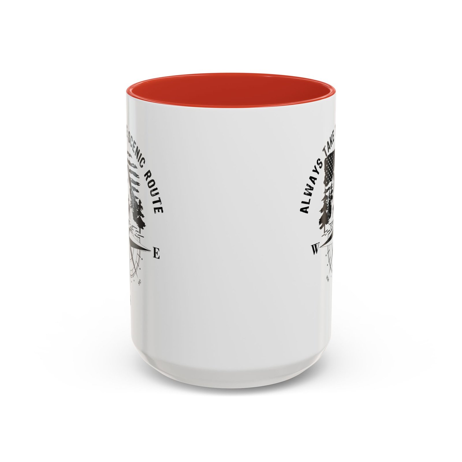 “Always Take The Scenic Route” Adventure Coffee Mug – 15oz Ceramic Compass Gift – Patriotic Wilderness Mug with Red Handle