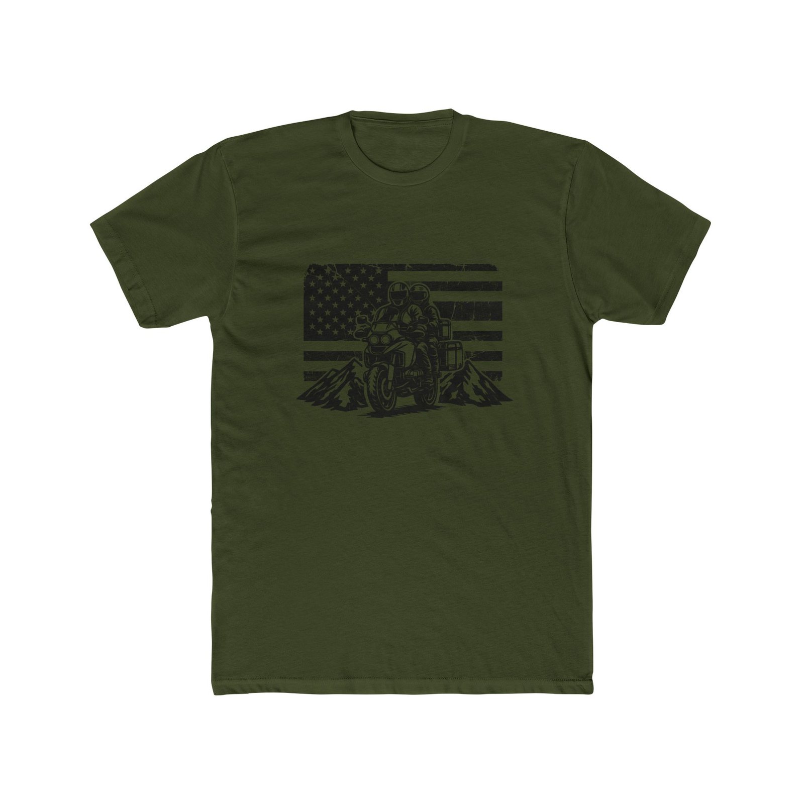 Adventure Motorcycle Shirt, ADV Touring Tee, Two-Up Riding T-Shirt, American Flag Motorcycle Gear, Dual Sport Rider Apparel, Mountain Biking Lifestyle, Motorbike Road Trip Shirt, Adventure Bike Gifts for Men, Motorcycle Couple T-Shirt, Distressed USA Flag Biker Tee, Touring Bike with Panniers Graphic, Off-road Adventure Clothing, Cross-Country Rider Tee, ADV Life Apparel.
