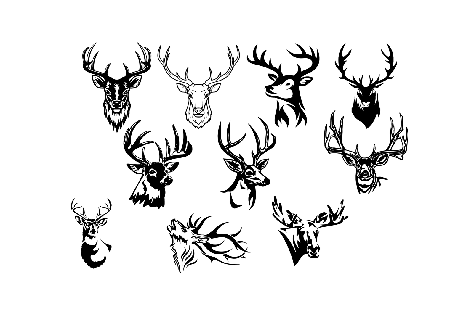 Deer Head Silhouette SVG Bundle – 10-Pack Hunting Buck Antler Vectors – Wildlife Stag Graphics for CNC, Laser Engraving, and Vinyl Cutting – Design for Cricut & Silhouette – Instant Digital Download