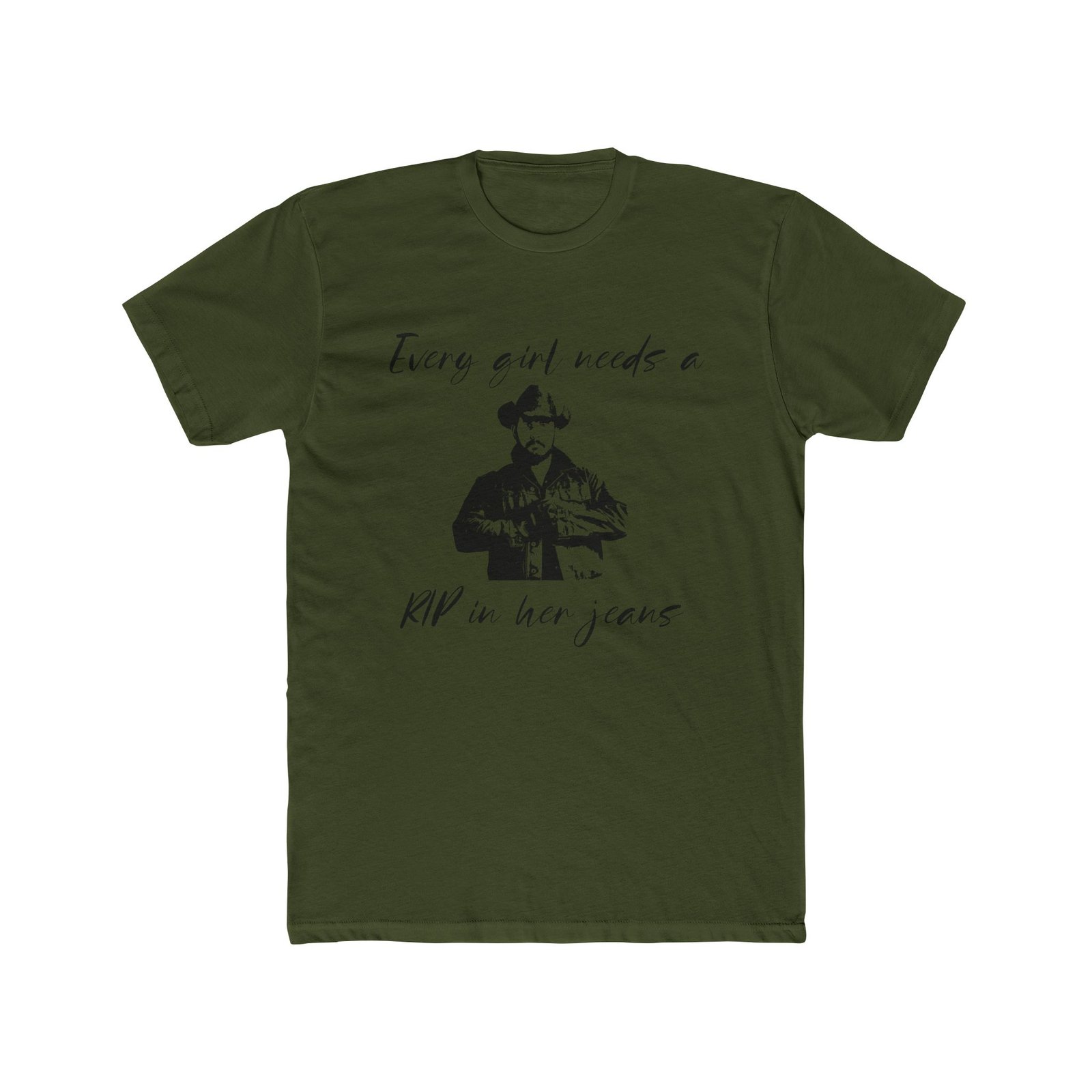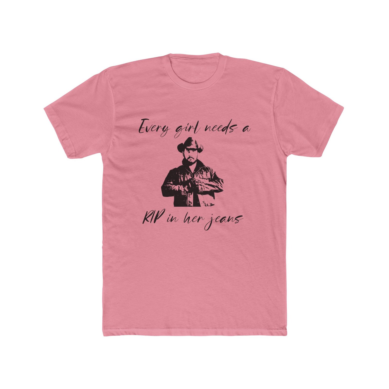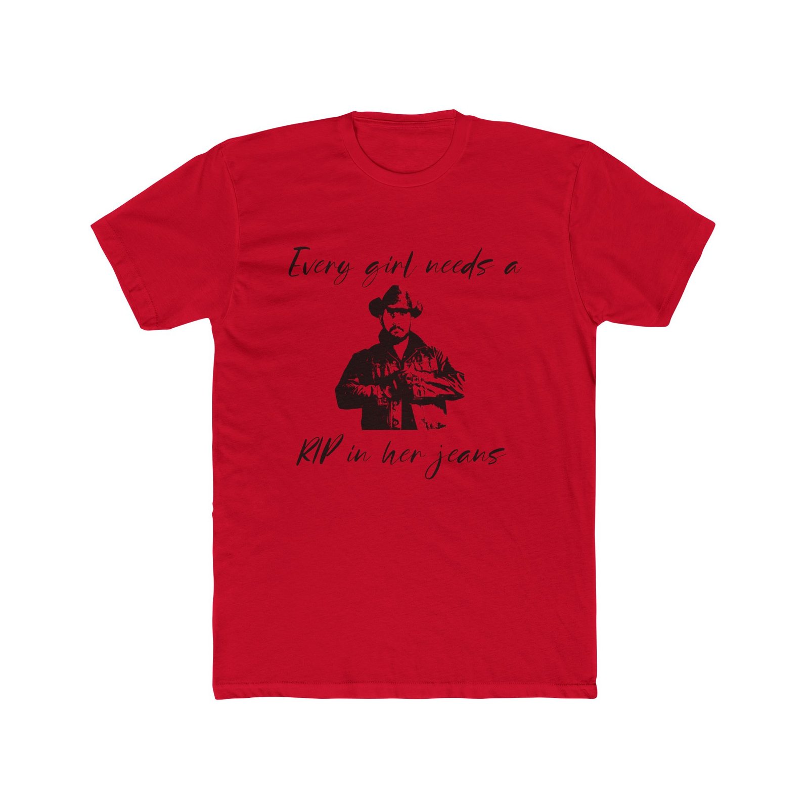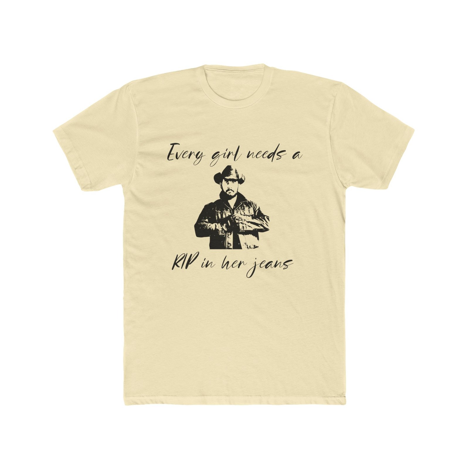 “Every Girl Needs a Rip in Her Jeans” Funny Yellowstone T-Shirt – Rip Wheeler Graphic Tee – Western Fan Apparel – Cowboy Humor Shirt – Unisex Tee Shirt Premium Fitted 100% Cotton Tee