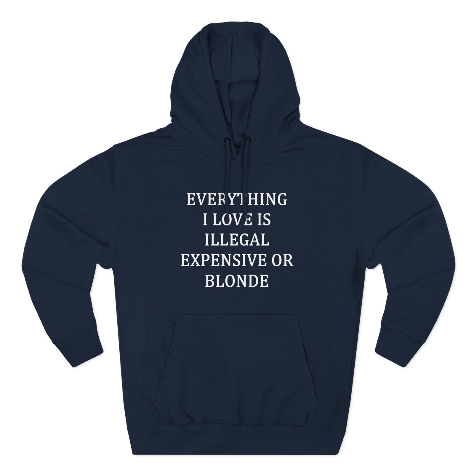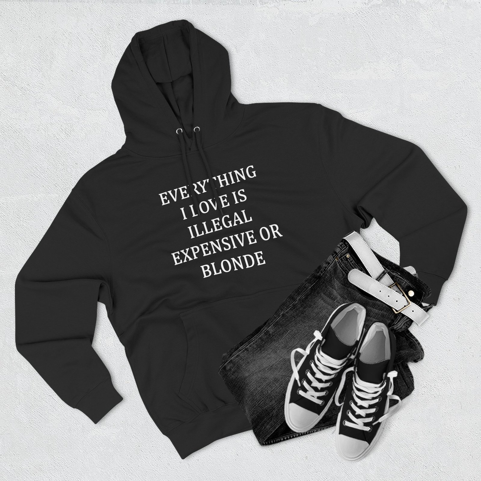 Everything I Love Is Illegal Expensive Or Blonde Hoodie – Funny Sarcastic Quote Sweatshirt – Witty Adult Humor Gift Hoodie Gift– Dual-Sport Heritage Hooded Sweatshirt
