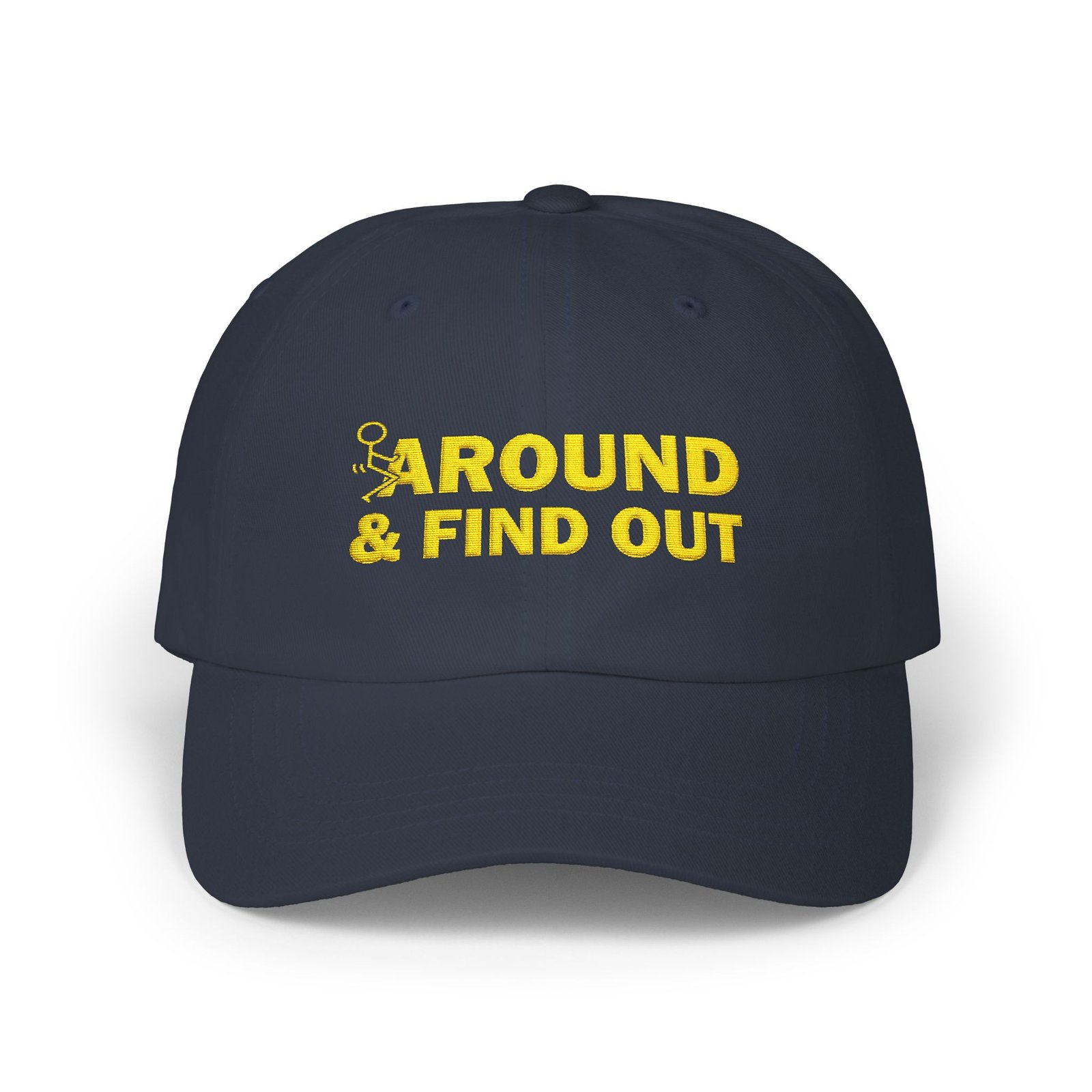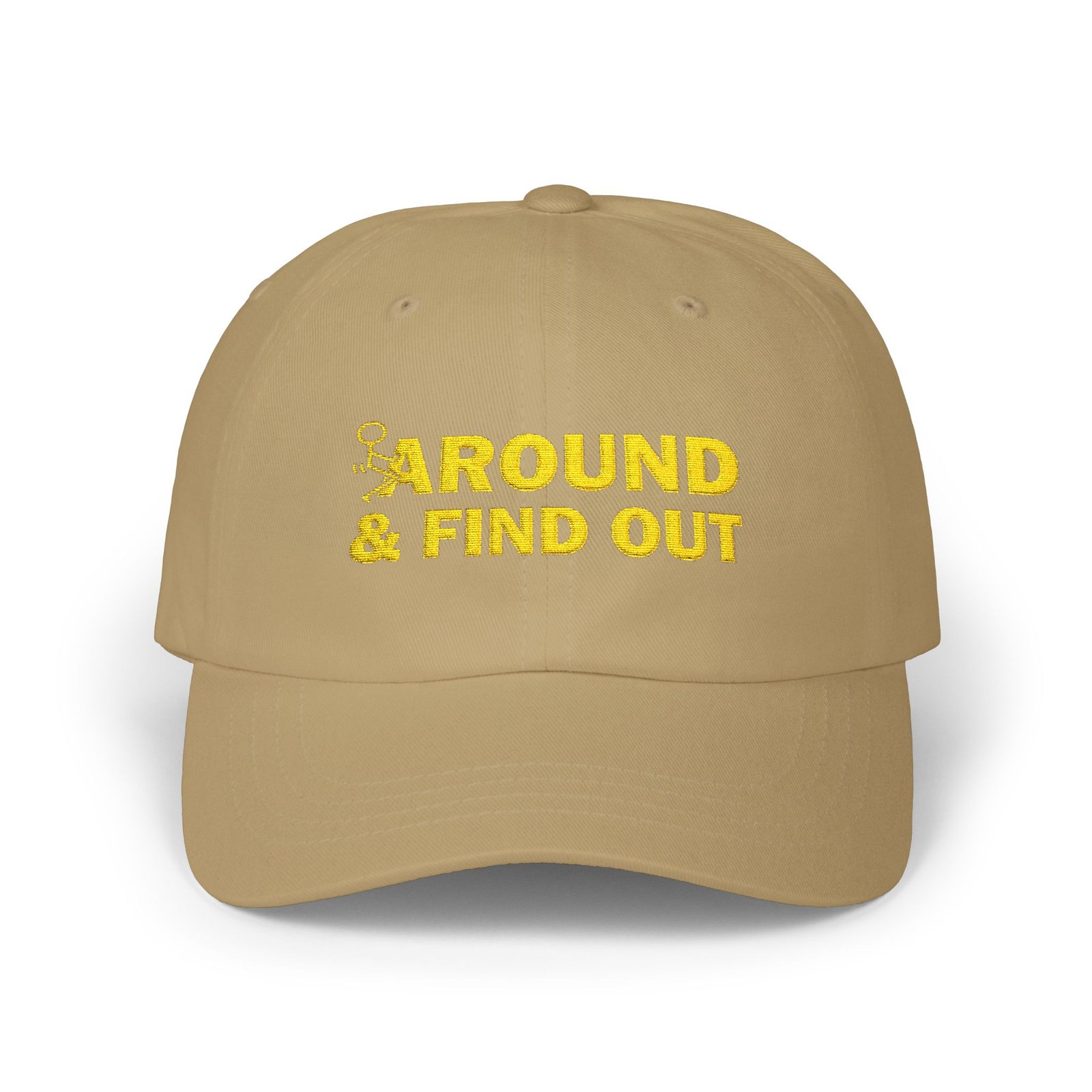 Funny “FAFO” Embroidered Dad Hat – Bold Yellow “F Around & Find Out” Cap – Sarcastic Meme Baseball Hat – Edgy Humor Gift for Men