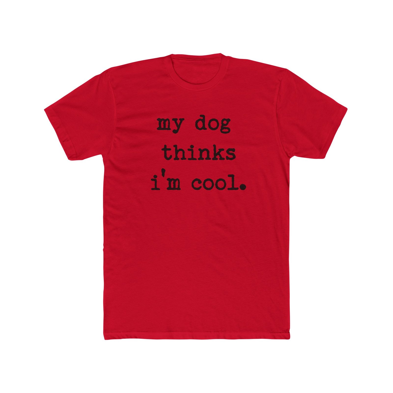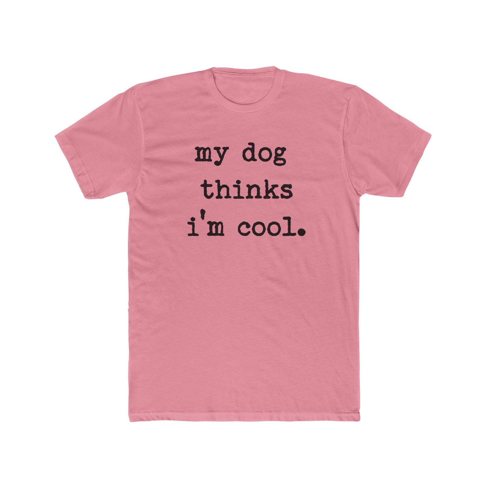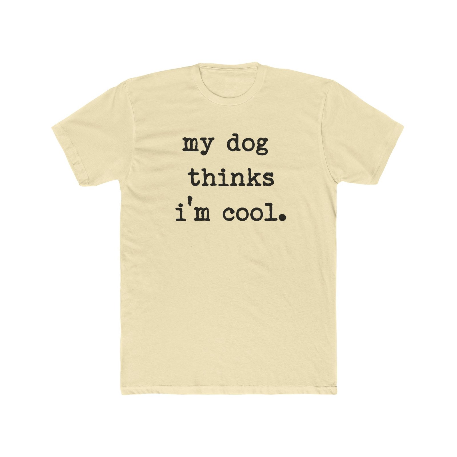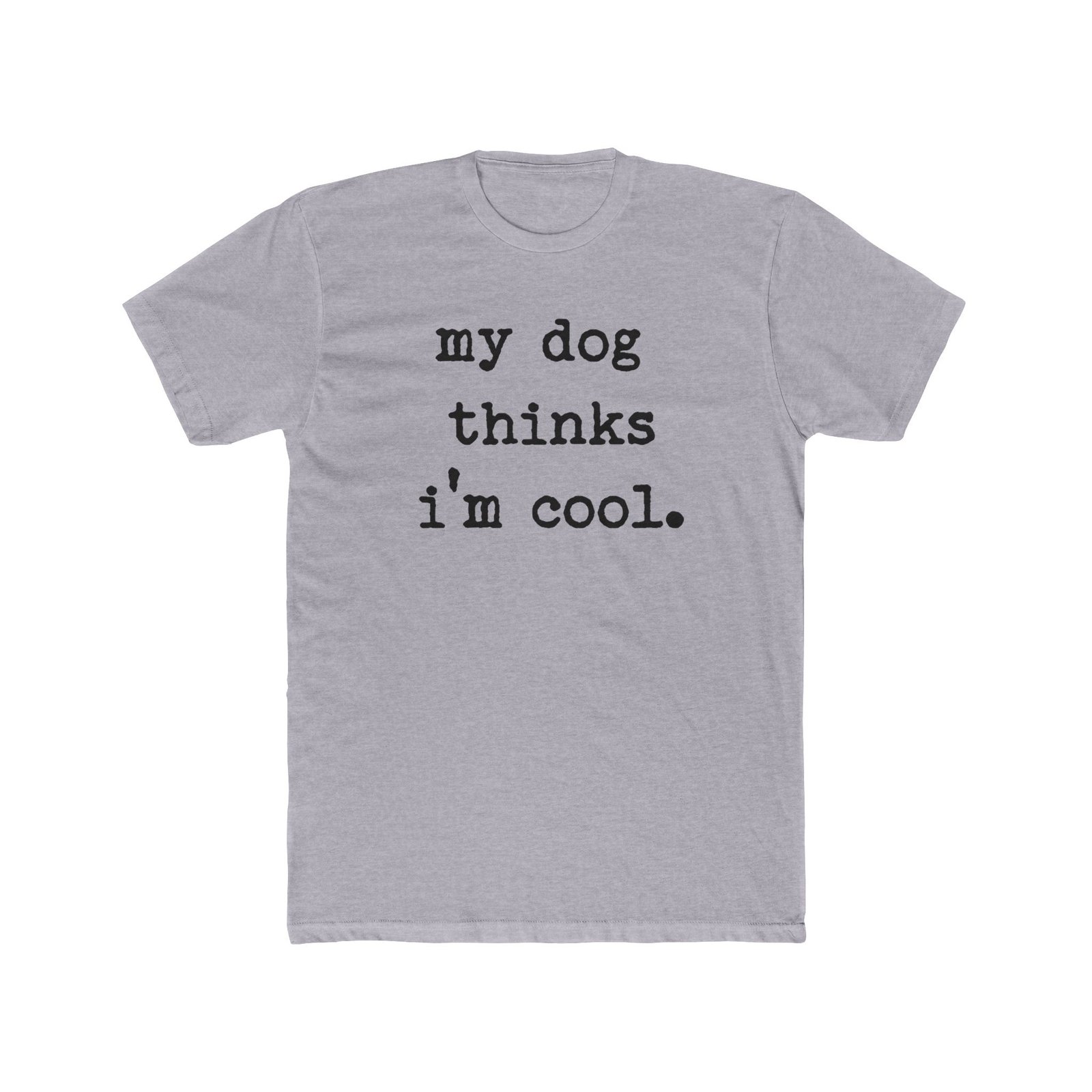 Funny Pet Parent T-Shirt “My Dog Thinks I’m Cool” Typewriter Text T-Shirt – Premium Fitted 100% Cotton Tee