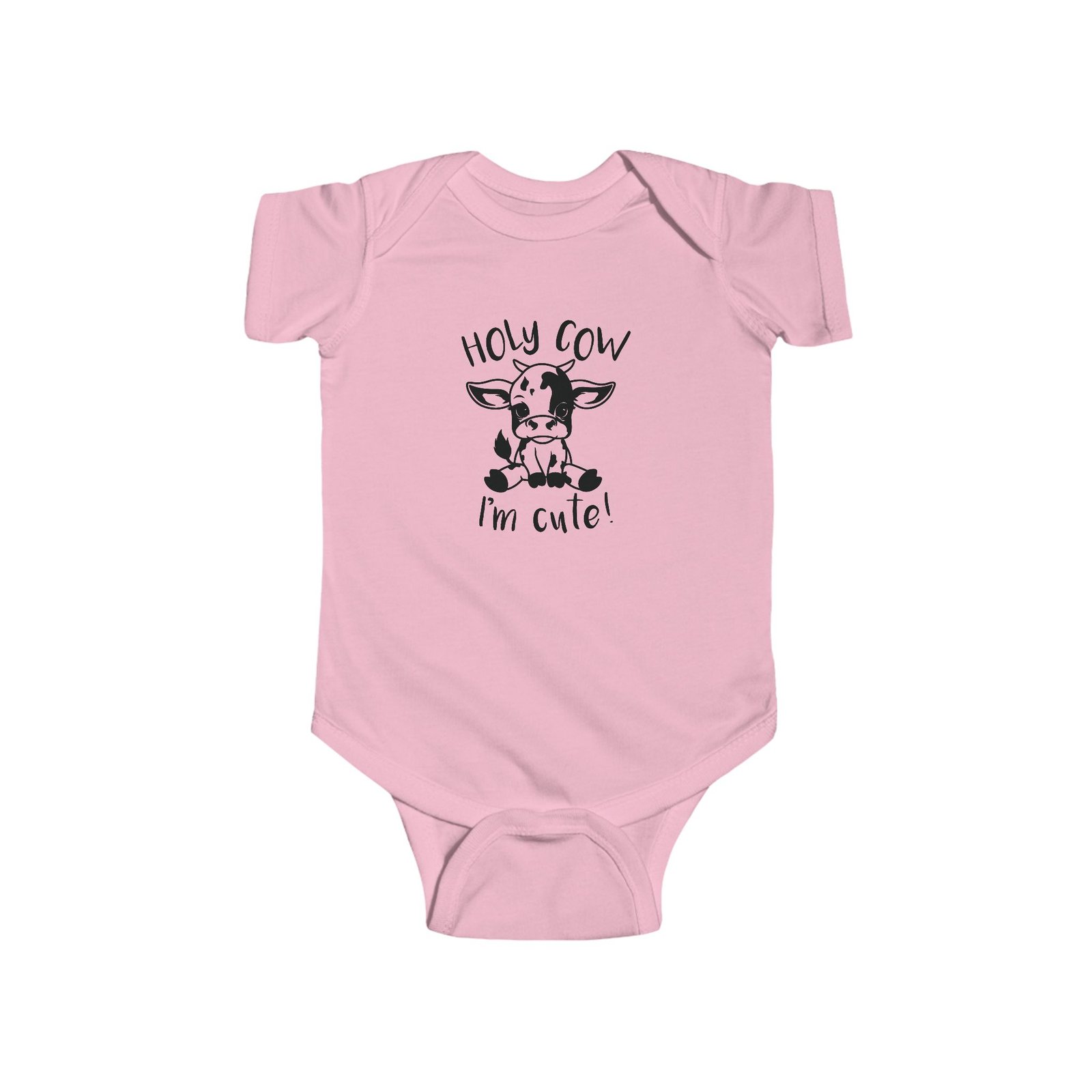 Holy Cow I’m Cute Baby Bodysuit, Newborn Baby Shower Gift, Gender Neutral, Premium Soft Cotton Newborn Outfit, Cute Animal Baby Gift