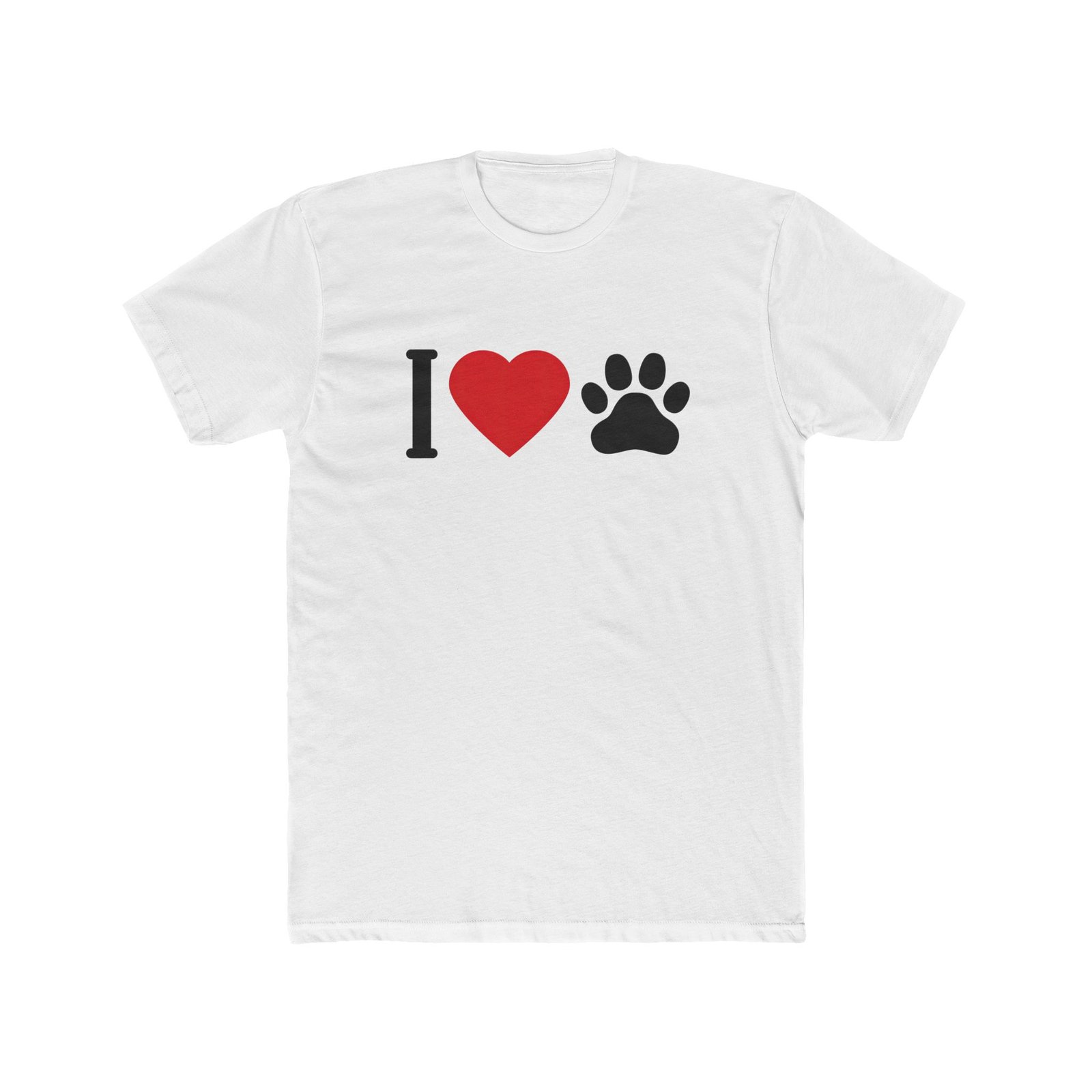 I love pets shirt, dog lover t-shirt, cat paw print graphic, red heart paw tee, pet mom gift, animal lover apparel, premium white cotton shirt, minimalist pet design, unisex graphic tee, paw print heart clothing.