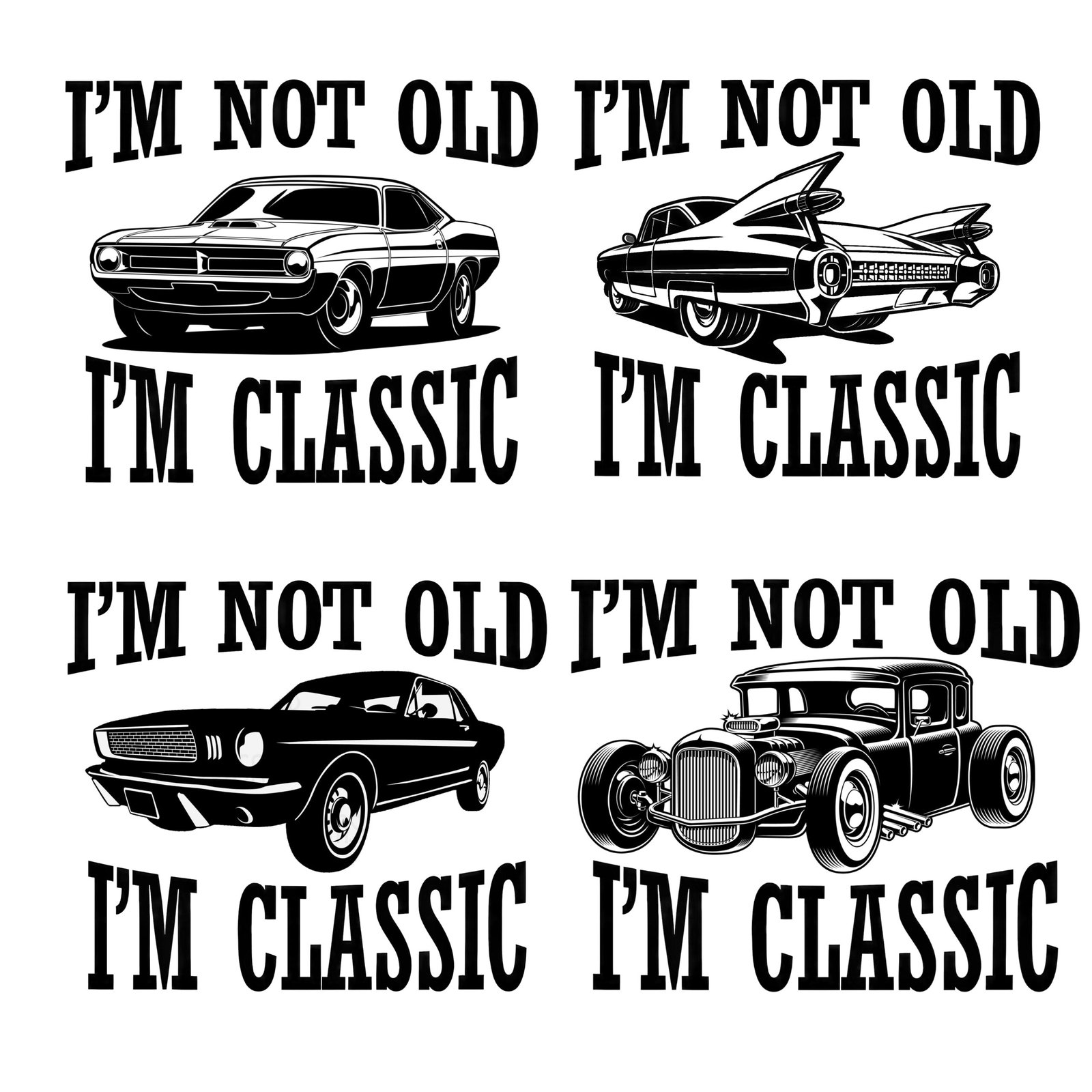 I’m Not Old I’m Classic SVG & PNG – Vintage 1950s Fins Car Graphic Design for Cricut & Silhouette – Instant Digital Download