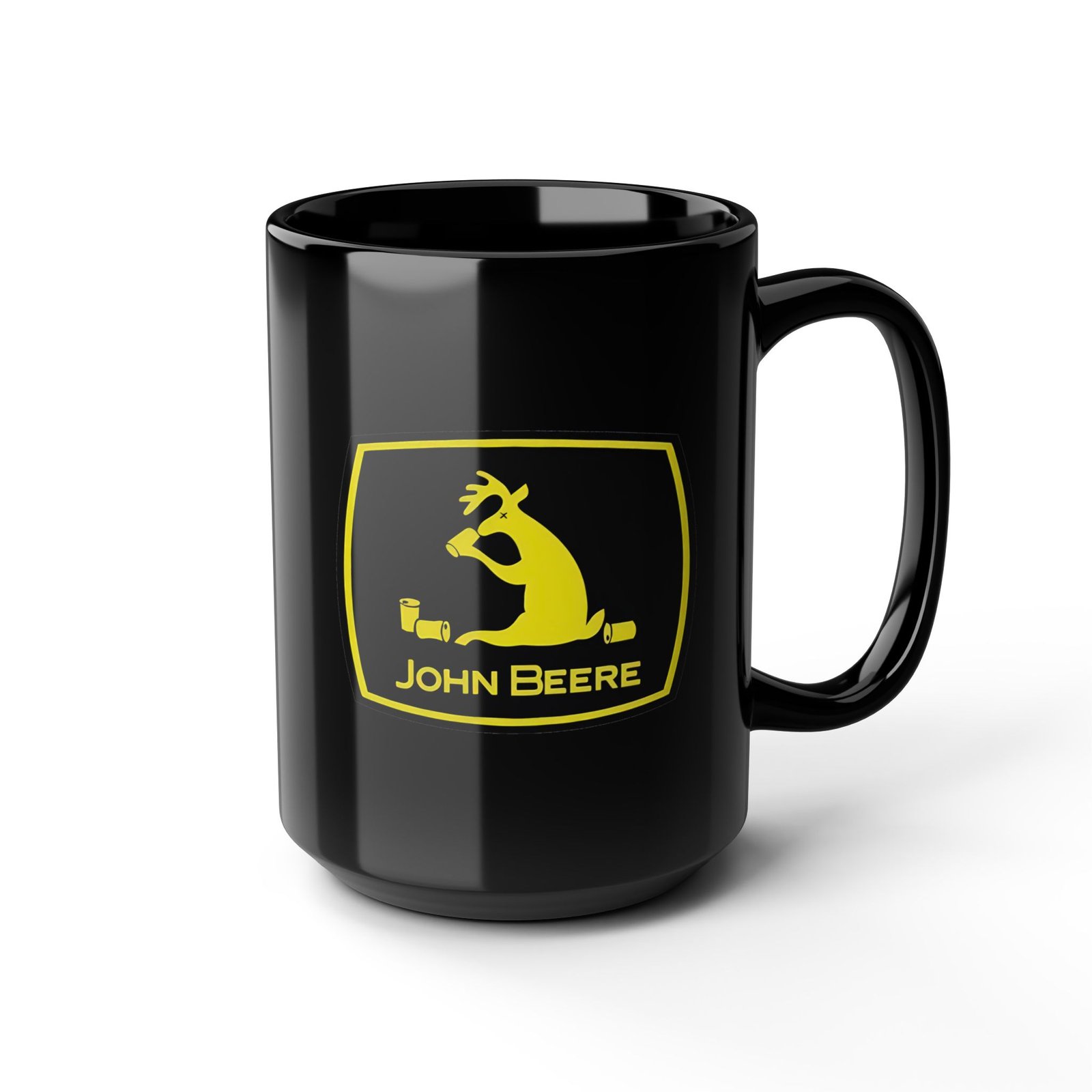 “John Beere” Funny Parody Coffee Mug – 15oz Black Ceramic Cup – Witty Hunting & Farming Humor Gift – 15oz Black Ceramic Coffee Cup Humor Mug