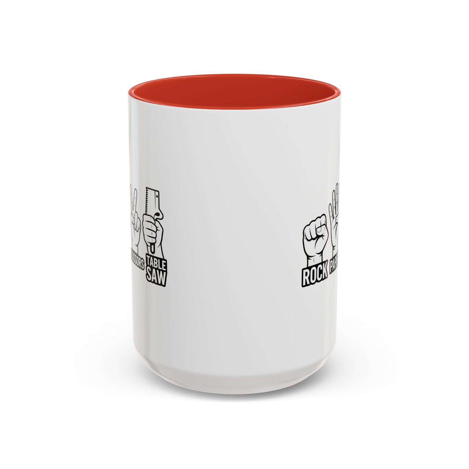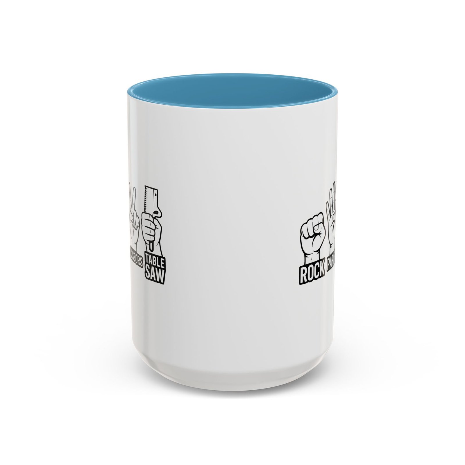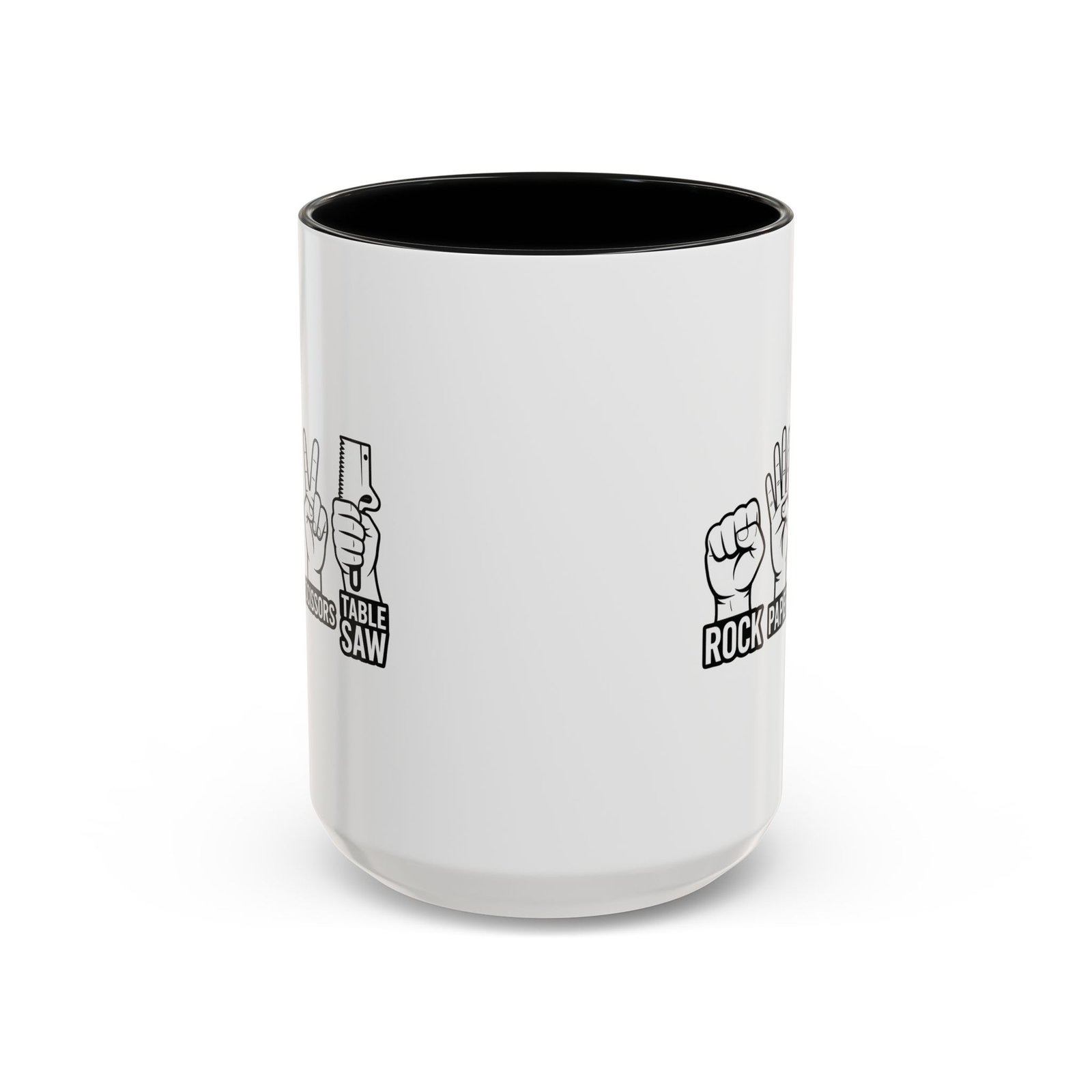 Large 15oz – Funny “Rock Paper Scissors Table Saw” Funny Woodworking Mug with Premium Quality, Sarcastic Workshop Safety Mug