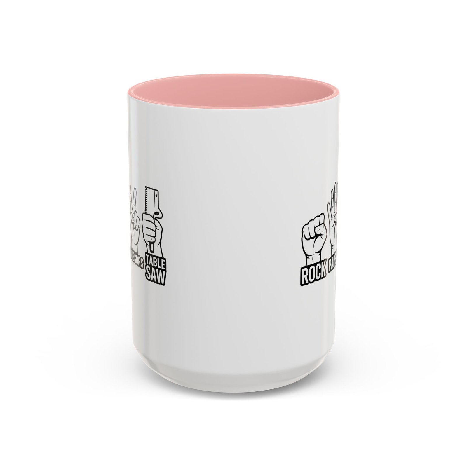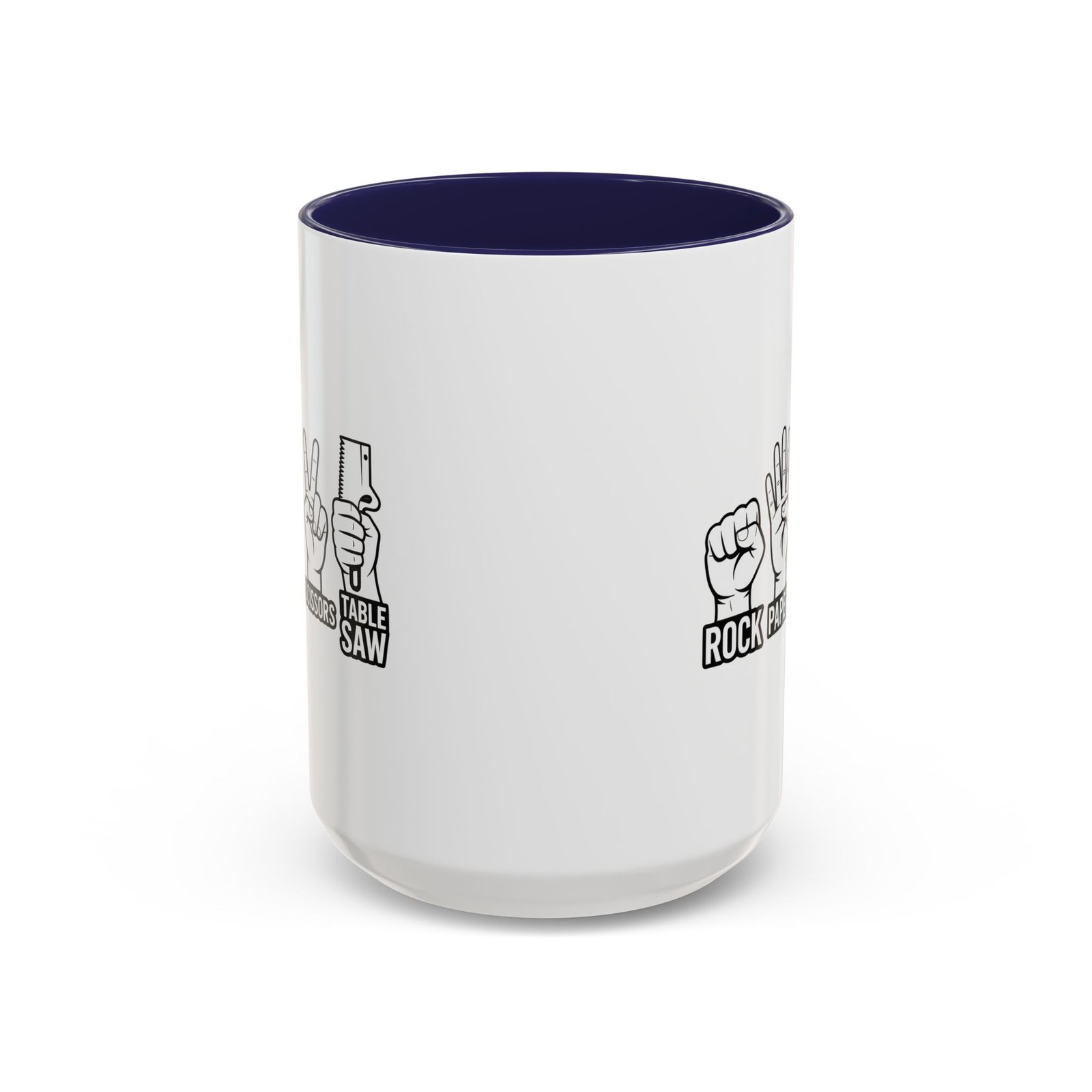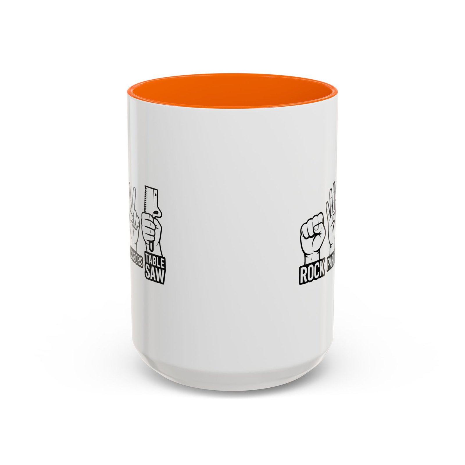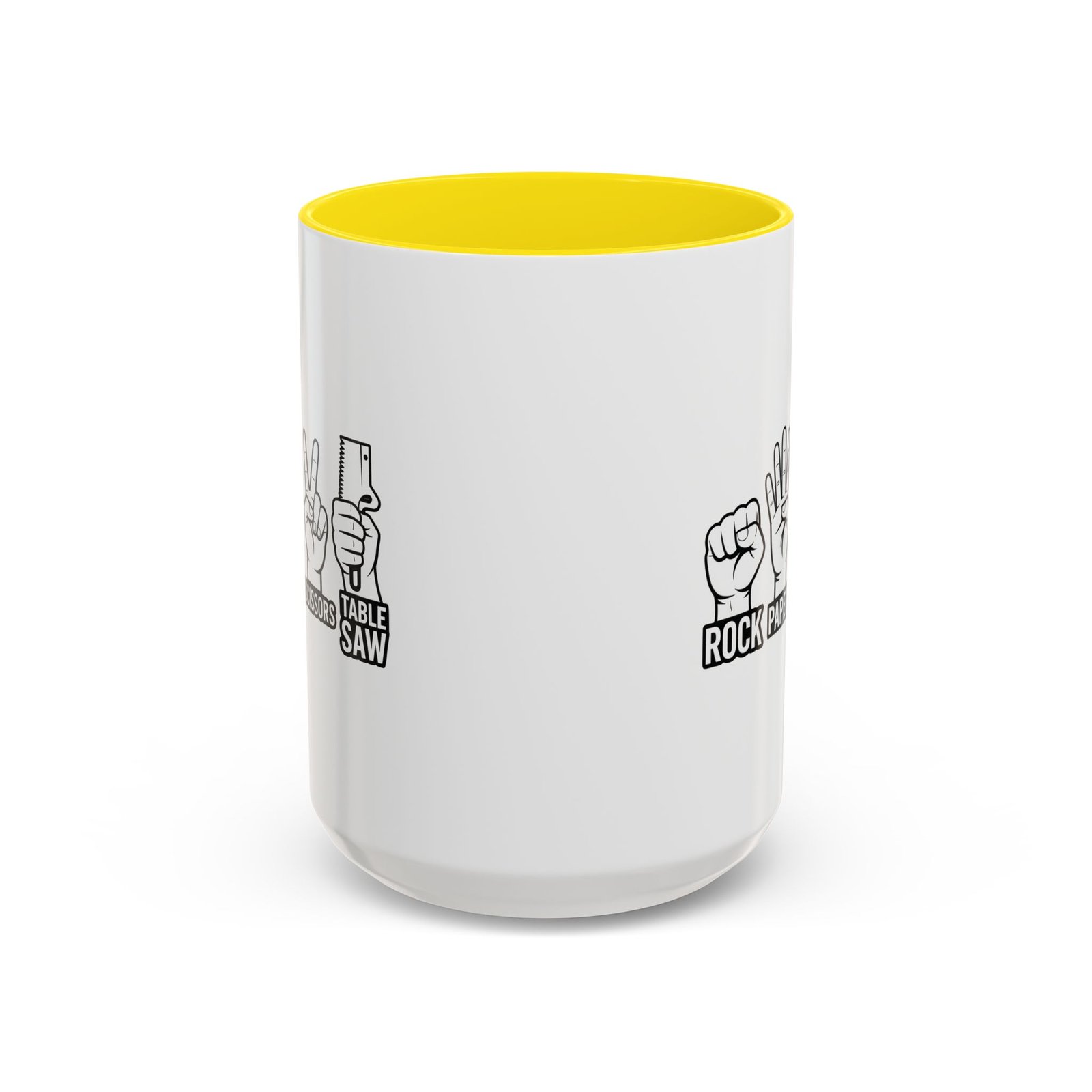Large 15oz – Funny “Rock Paper Scissors Table Saw” Funny Woodworking Mug with Premium Quality, Sarcastic Workshop Safety Mug