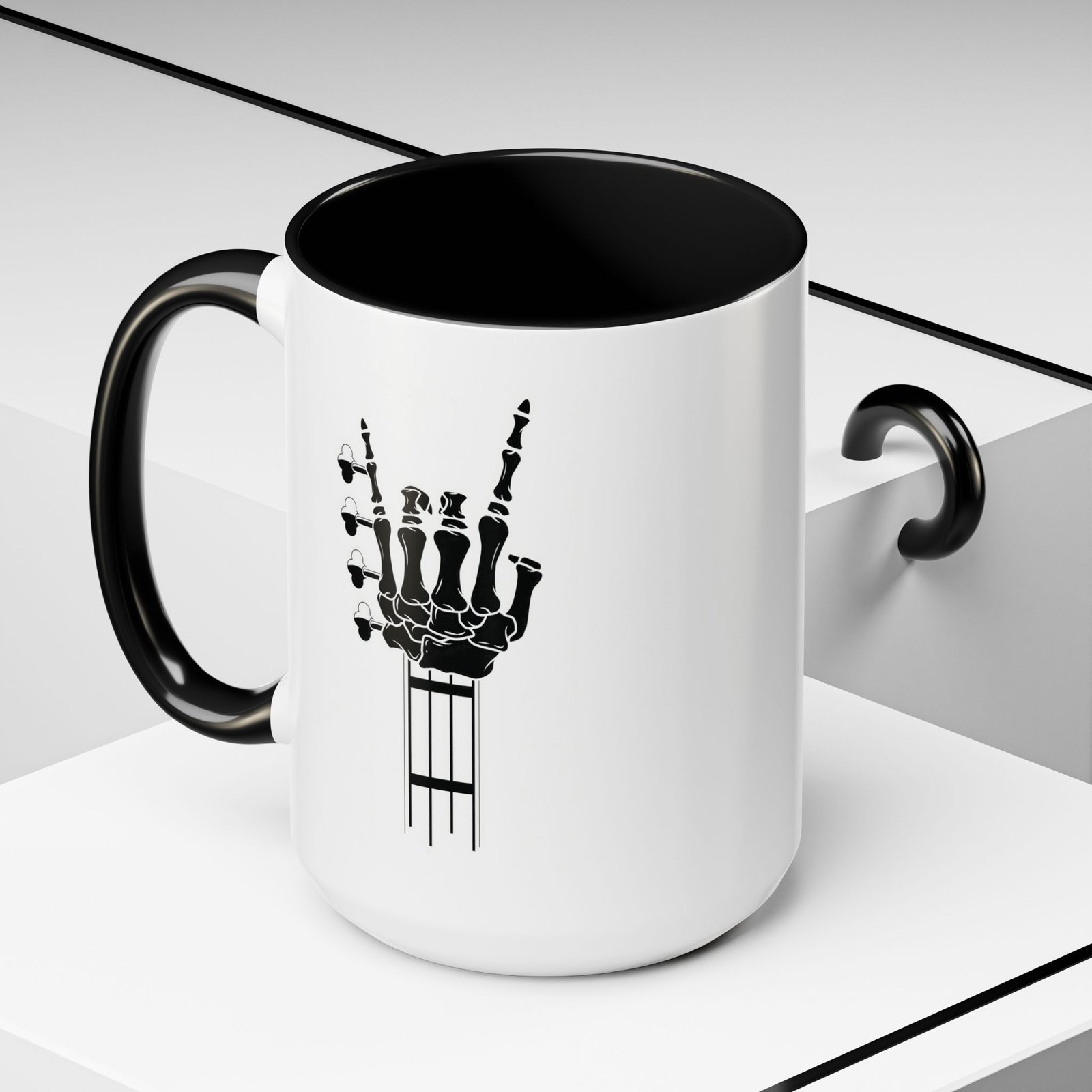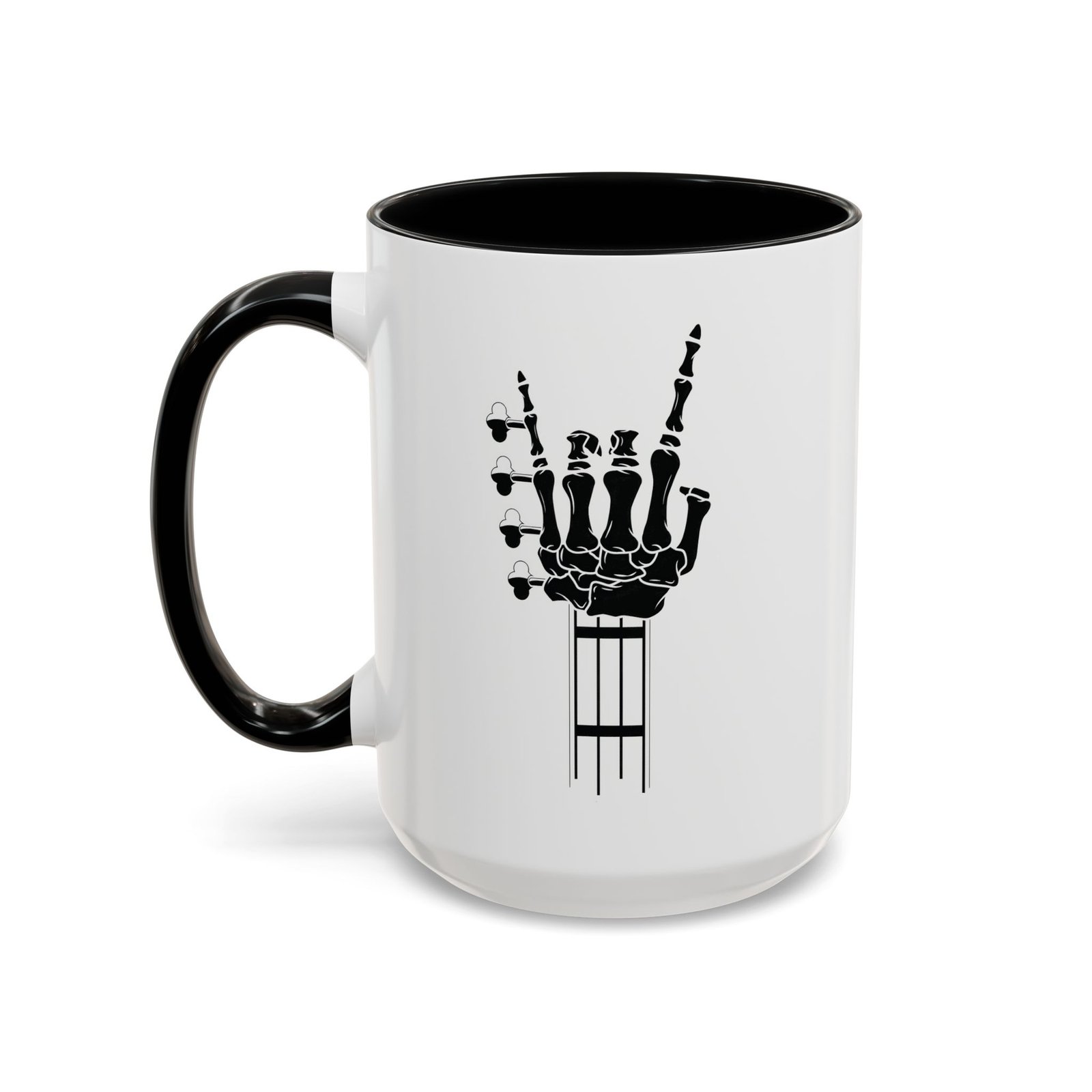 Large 15oz -Skeleton Guitar – Accent Coffee Mug with Premium Quality, Two-Tone Ceramic Cup, Gift