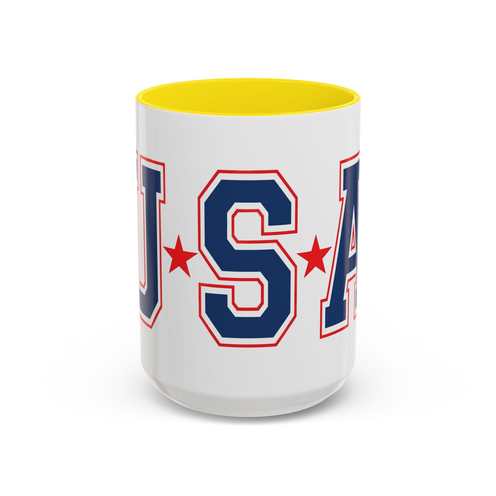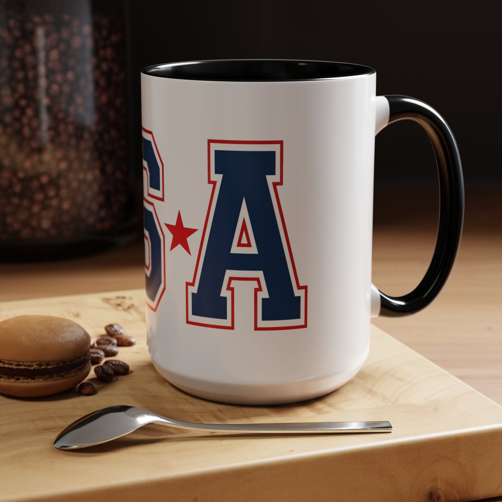 Large 15oz – USA Patriotic Coffee Mug – Accent Coffee Mug with Premium Quality, Two-Tone Ceramic Cup, America Gift Mug