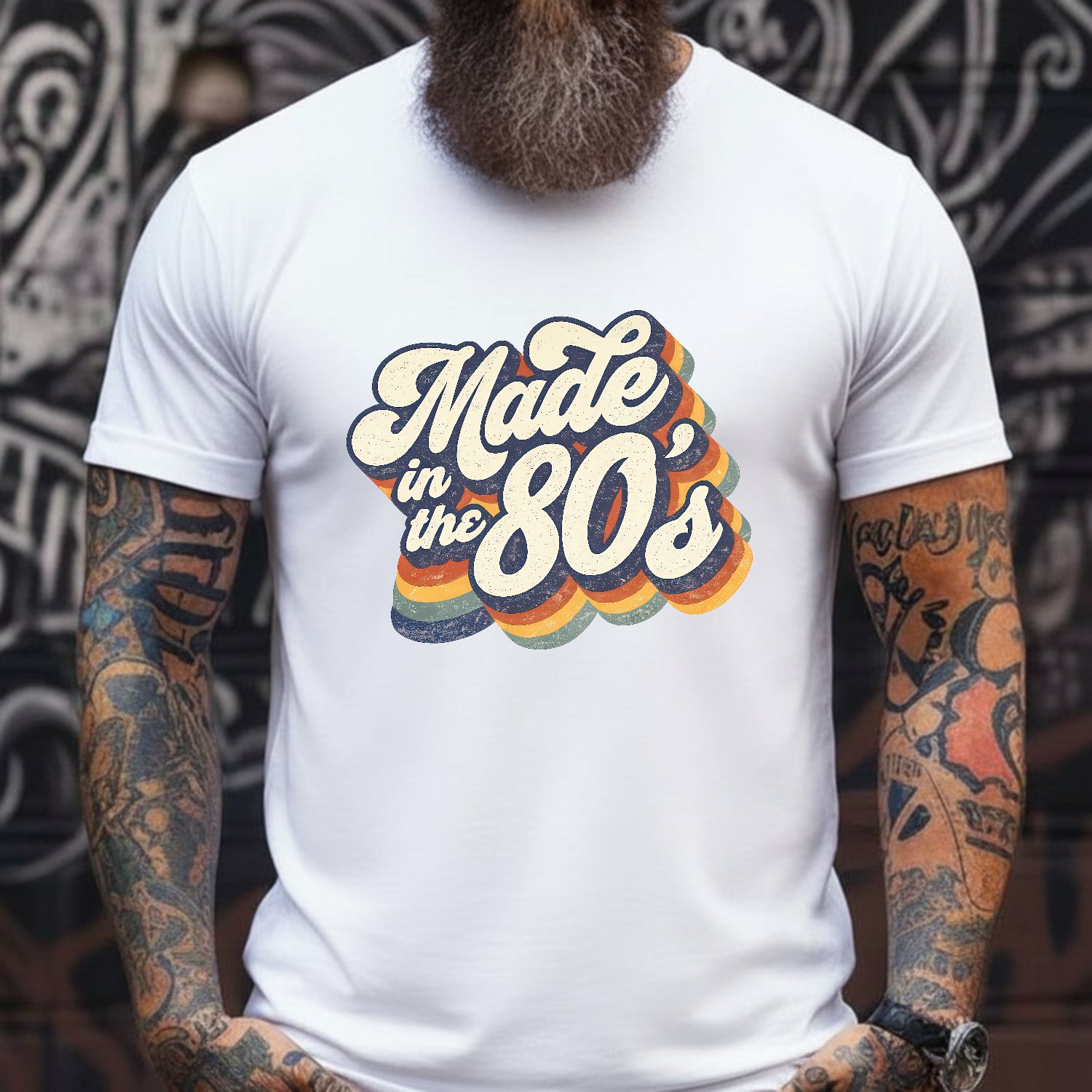 Celebrate a classic era with this vibrant, retro “Made in the 80s” t-shirt!