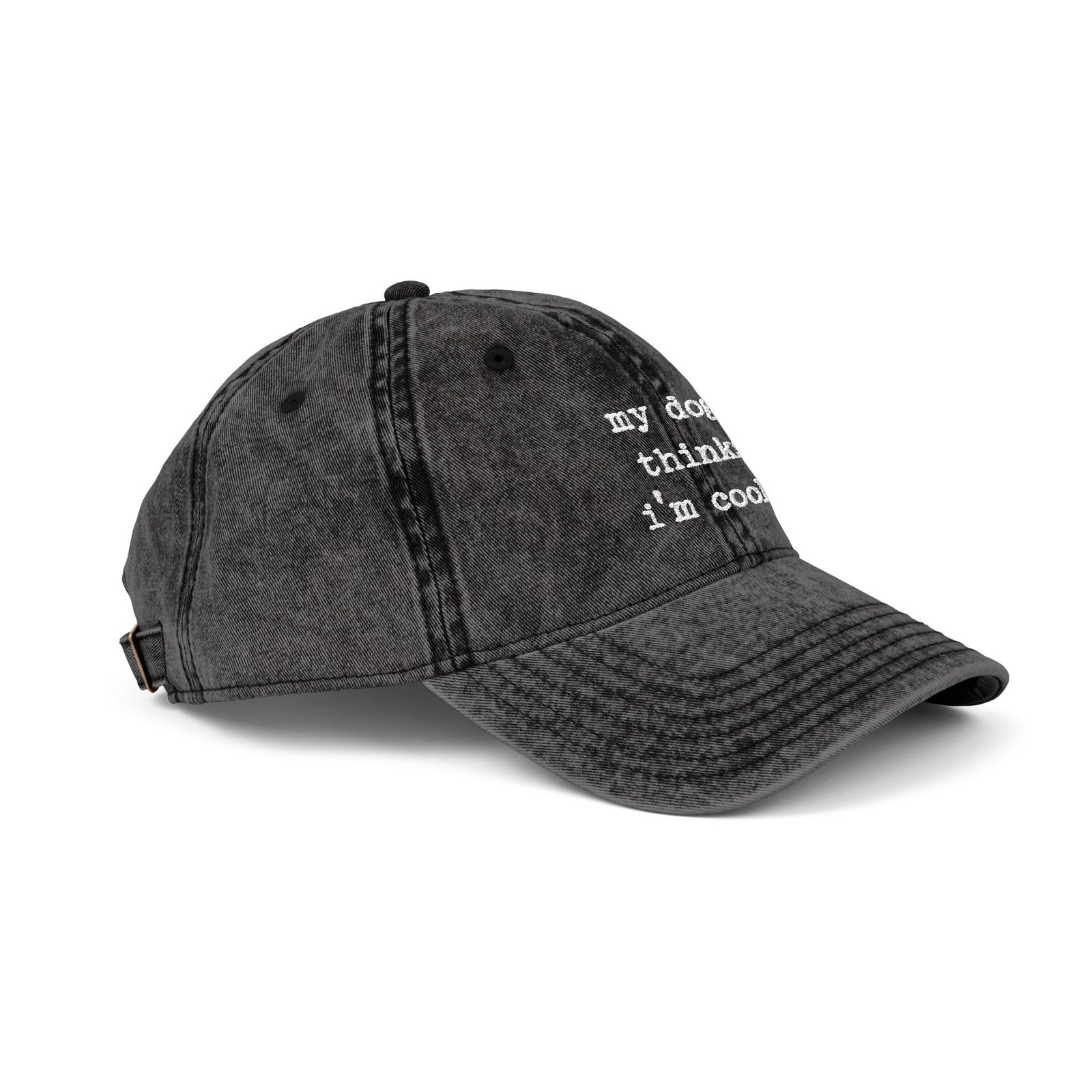 My dog thinks i’m cool Embroidered Vintage Cap — Distressed Vintage Hat