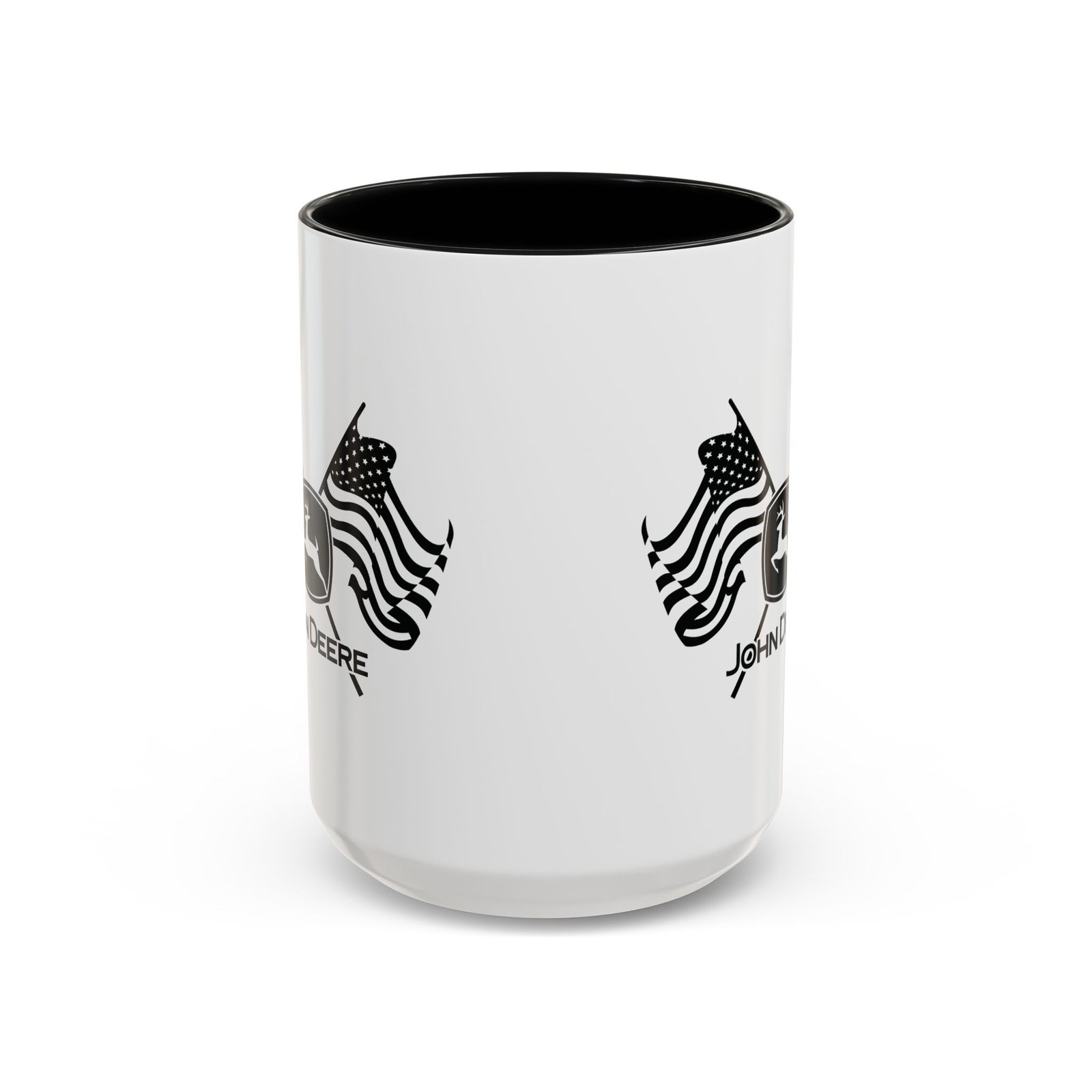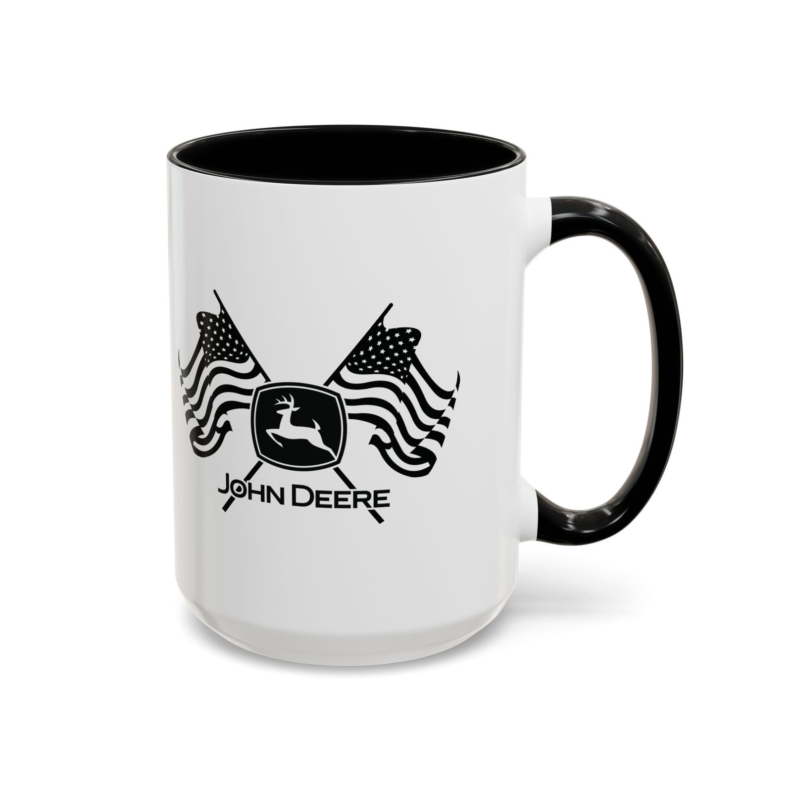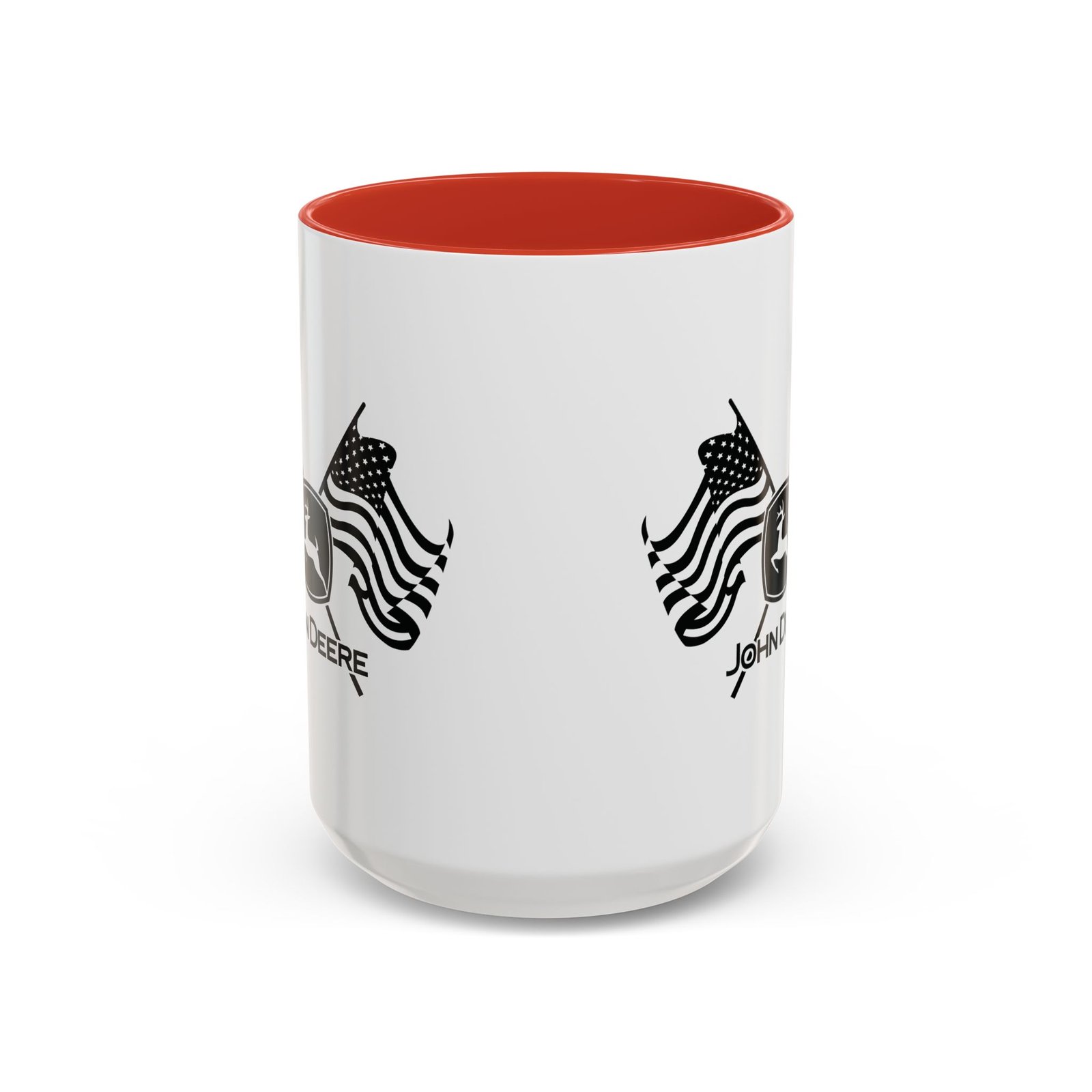 Patriotic John Deere Logo Coffee Mug – 15oz Ceramic Heritage Cup with Red Handle – American Flag Farming Gift