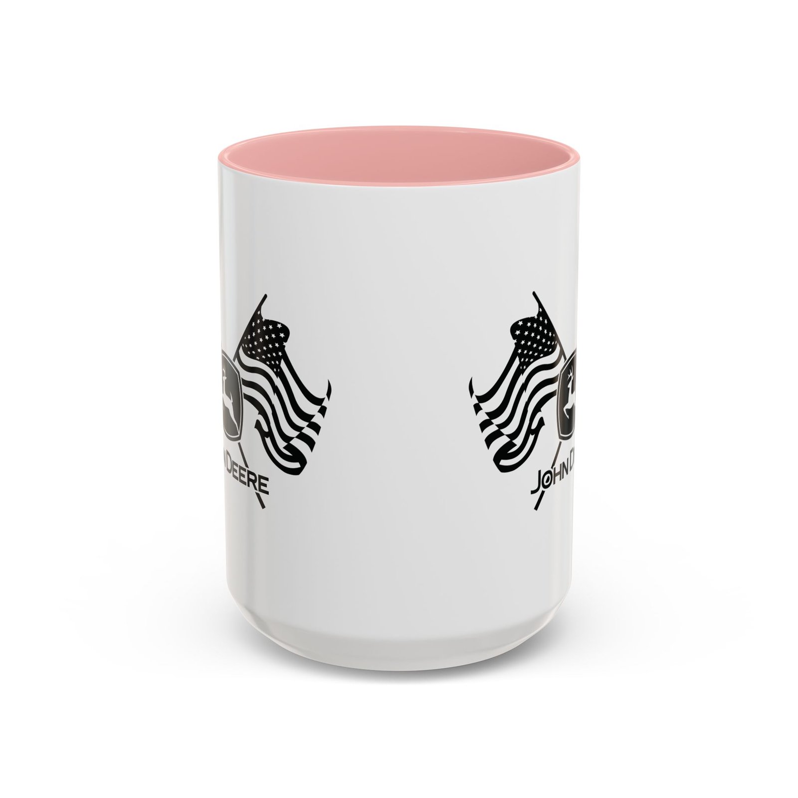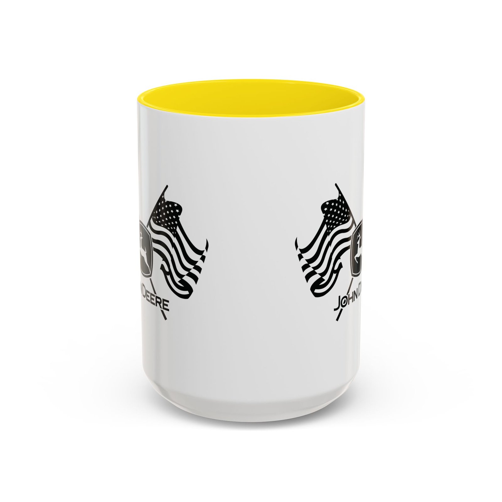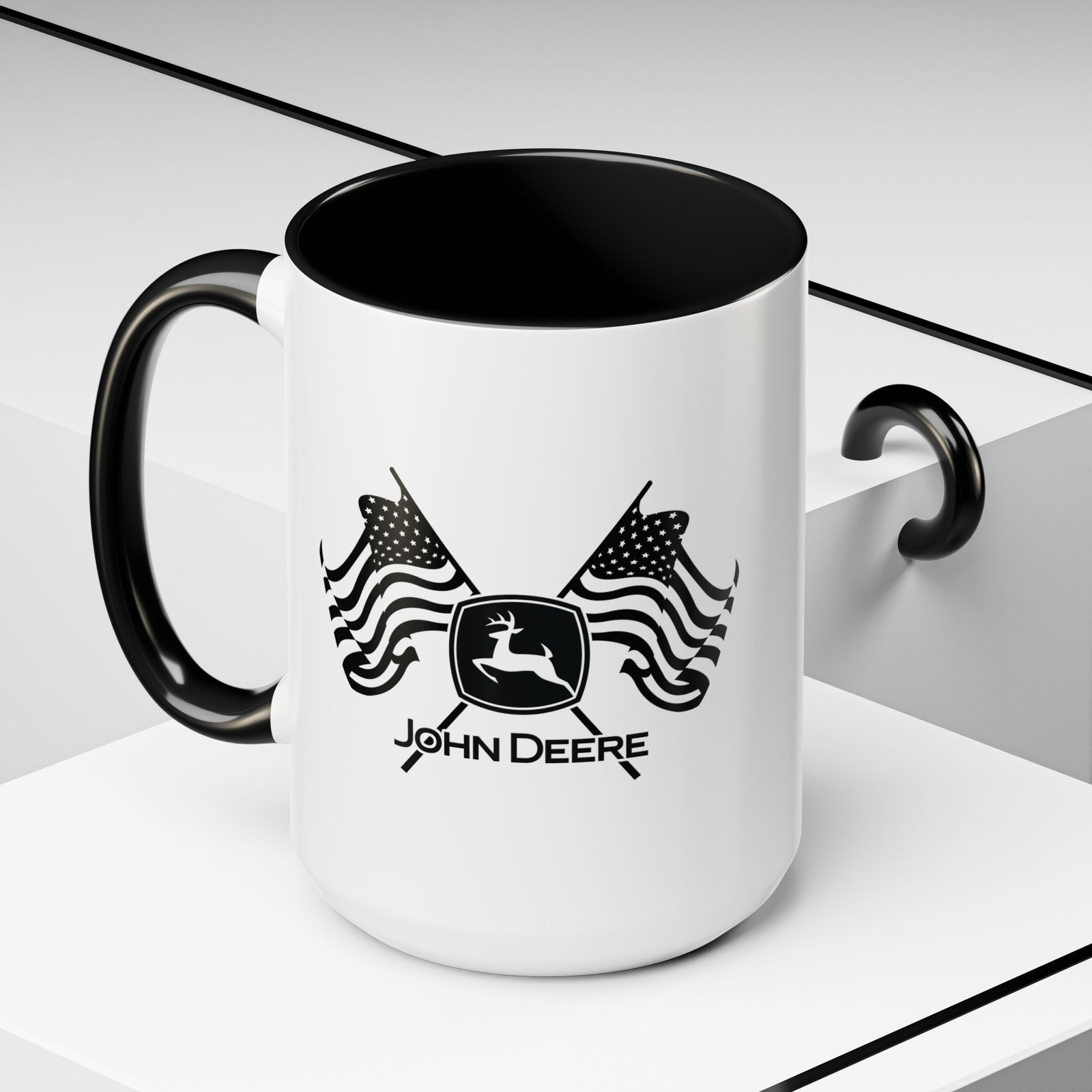 Patriotic John Deere Logo Coffee Mug – 15oz Ceramic Heritage Cup with Red Handle – American Flag Farming Gift