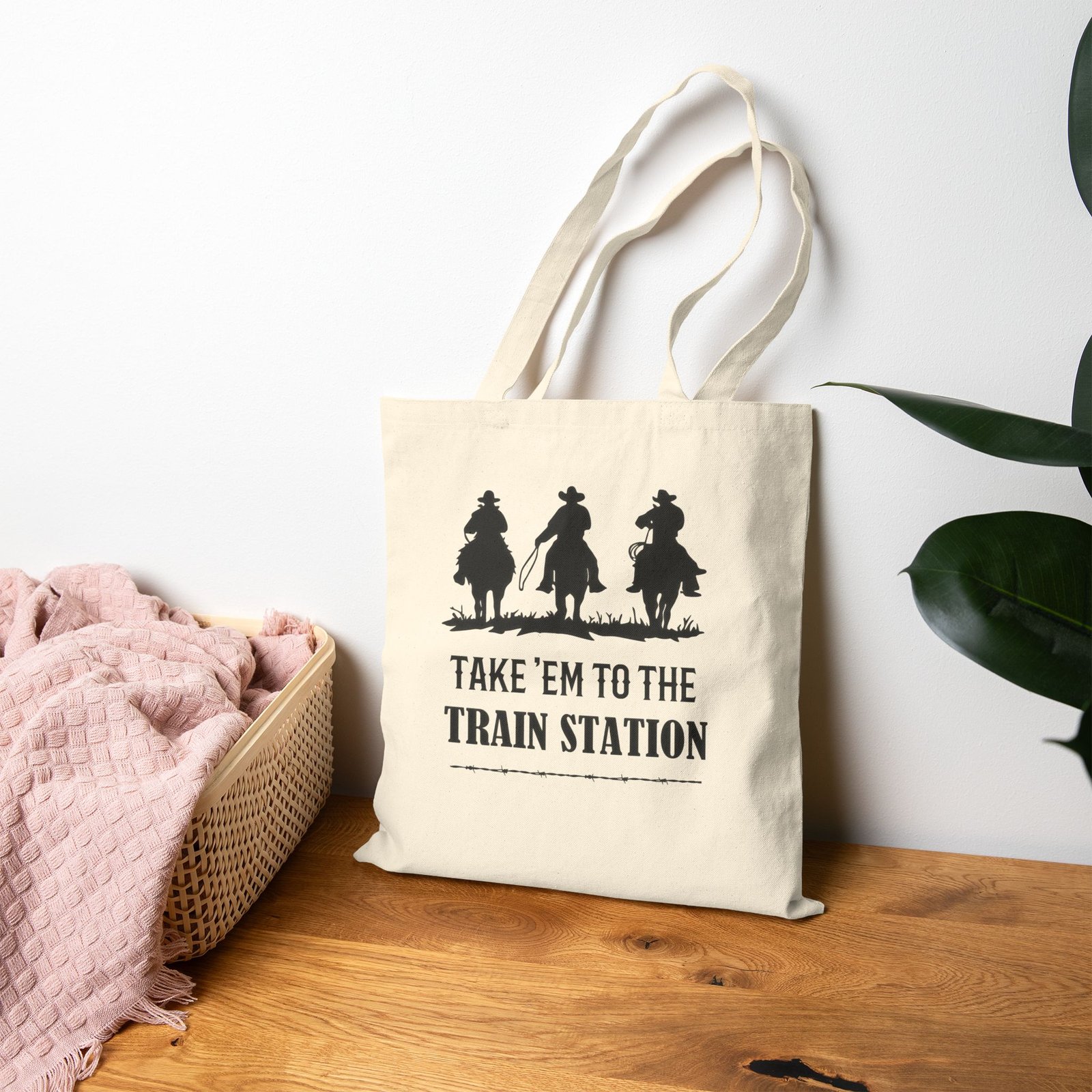 Premium Canvas Tote Bag – Sustainable Style for Everyday Use — Take Em to the Train Station West Cowboy Illustration Tote