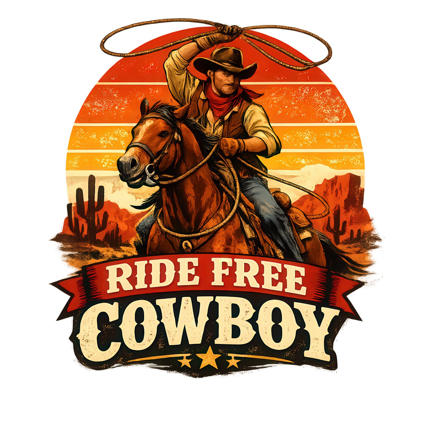 Ride Free Cowboy SVG PNG – Vintage Western Sunset Digital Design – Retro Cowboy Lassoing Vector – Desert Rodeo Clipart for Sublimation Digital Cut File for Cricut & Sublimation – Instant Digital Download