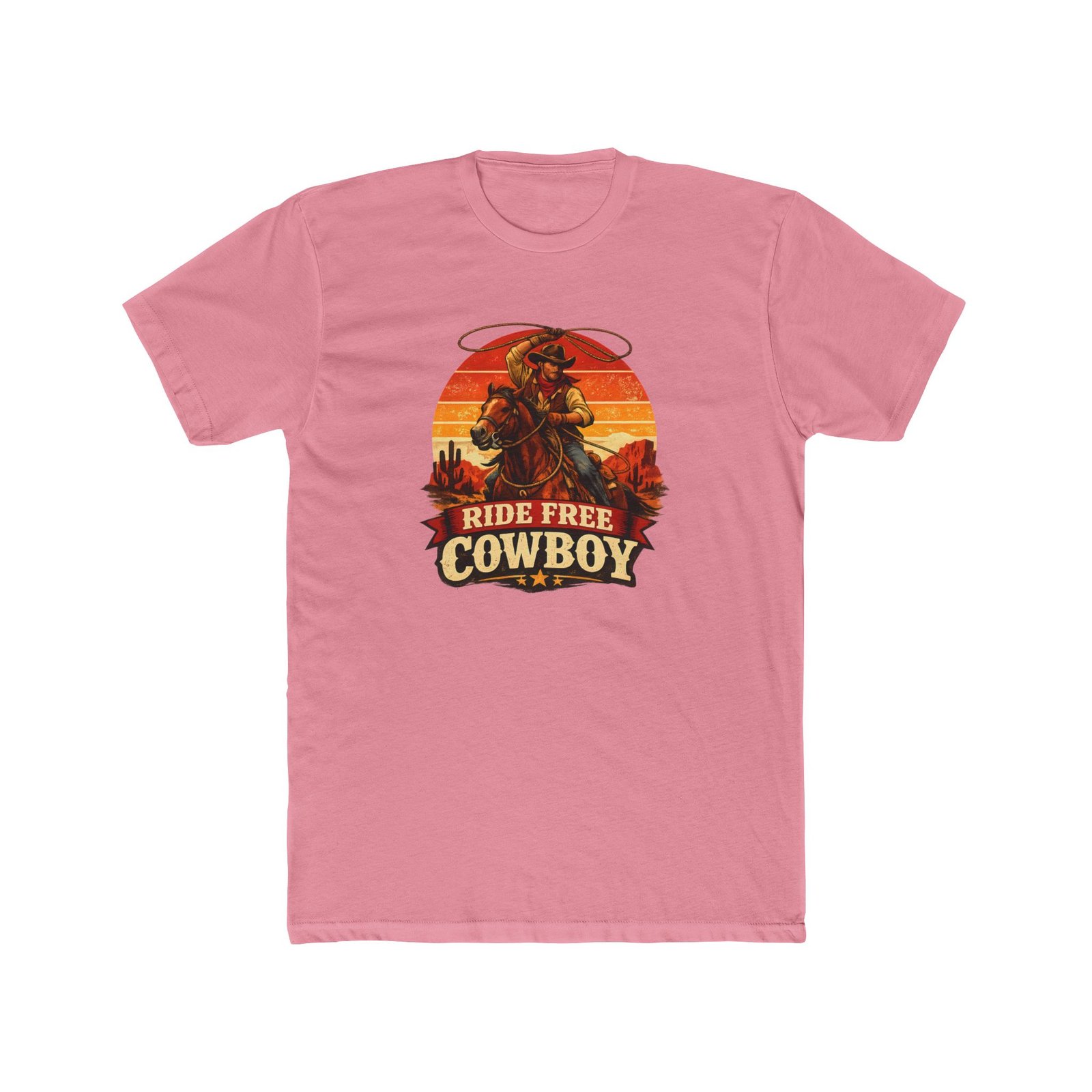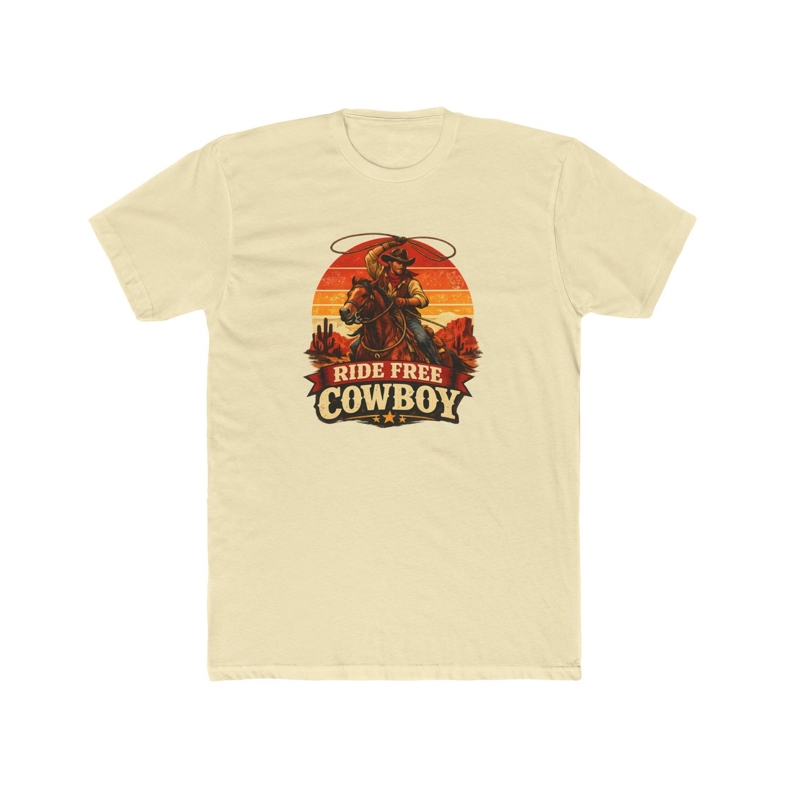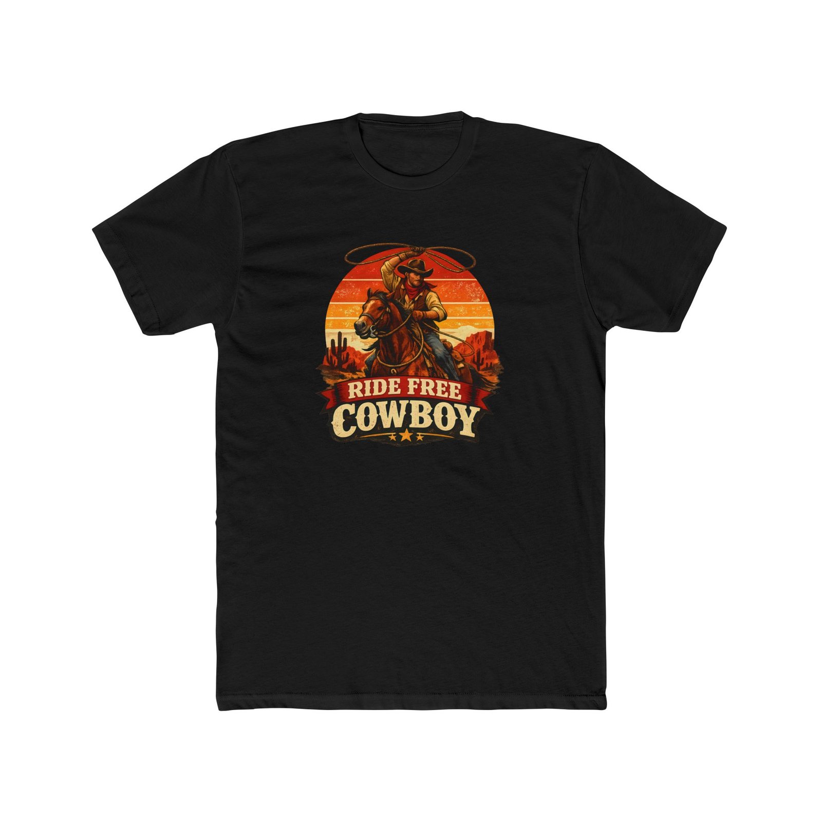 Ride Free Cowboy T-Shirt – Vintage Western Graphic Tee – Retro Sunset Cowboy Shirt – Desert Rodeo Apparel – Gift for Horse Lovers Apparel Shirt Premium Fitted 100% Cotton Tee