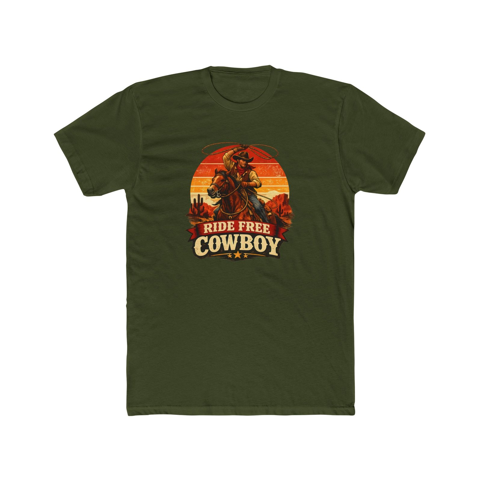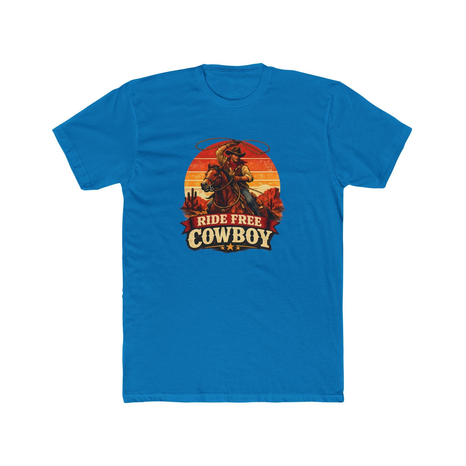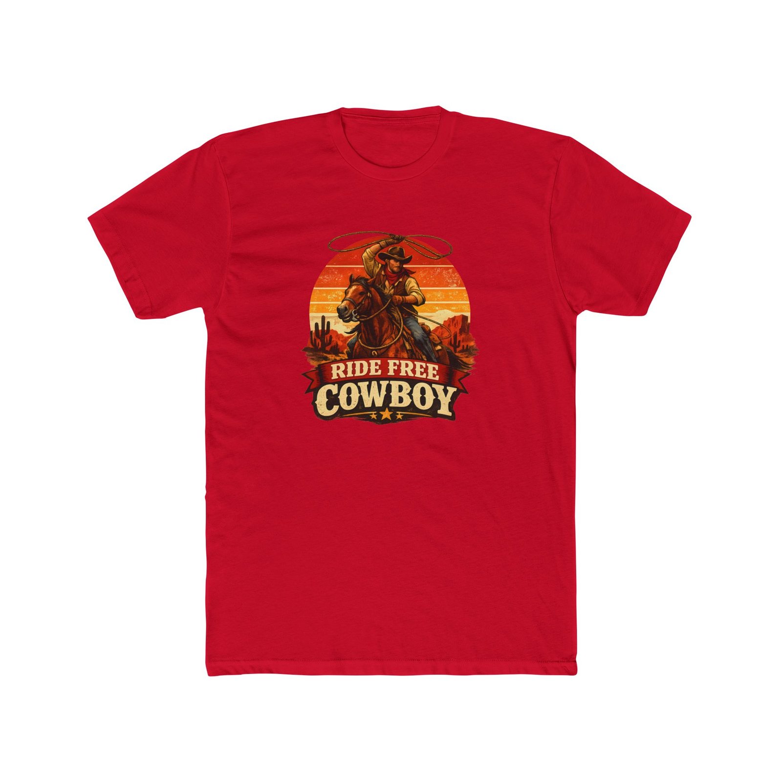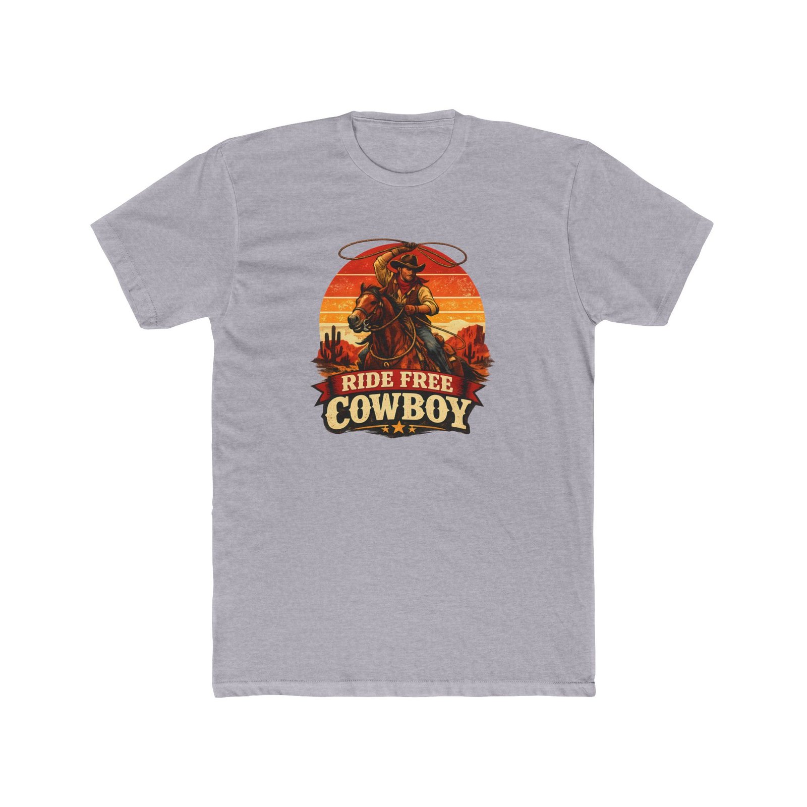 Ride Free Cowboy T-Shirt – Vintage Western Graphic Tee – Retro Sunset Cowboy Shirt – Desert Rodeo Apparel – Gift for Horse Lovers Apparel Shirt Premium Fitted 100% Cotton Tee
