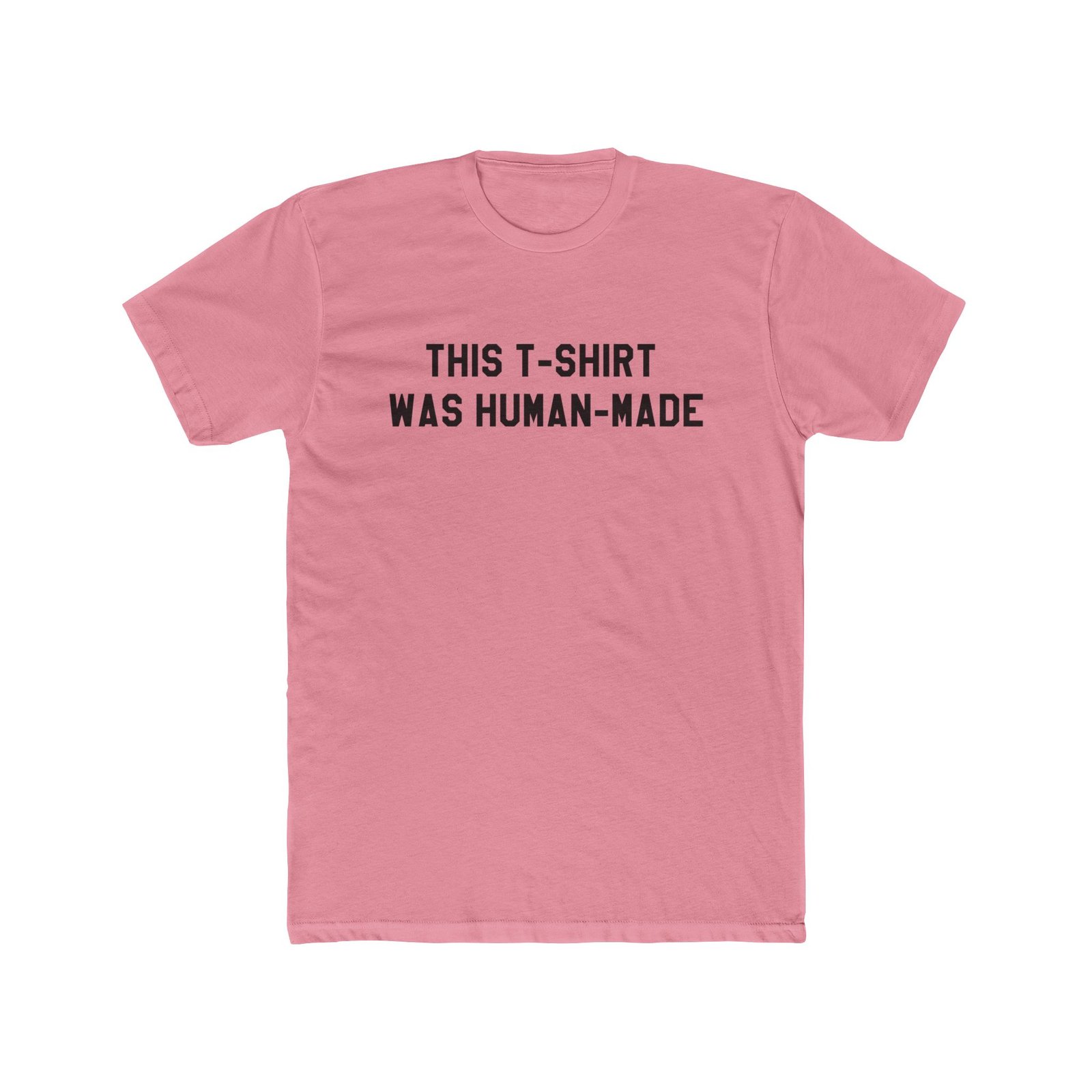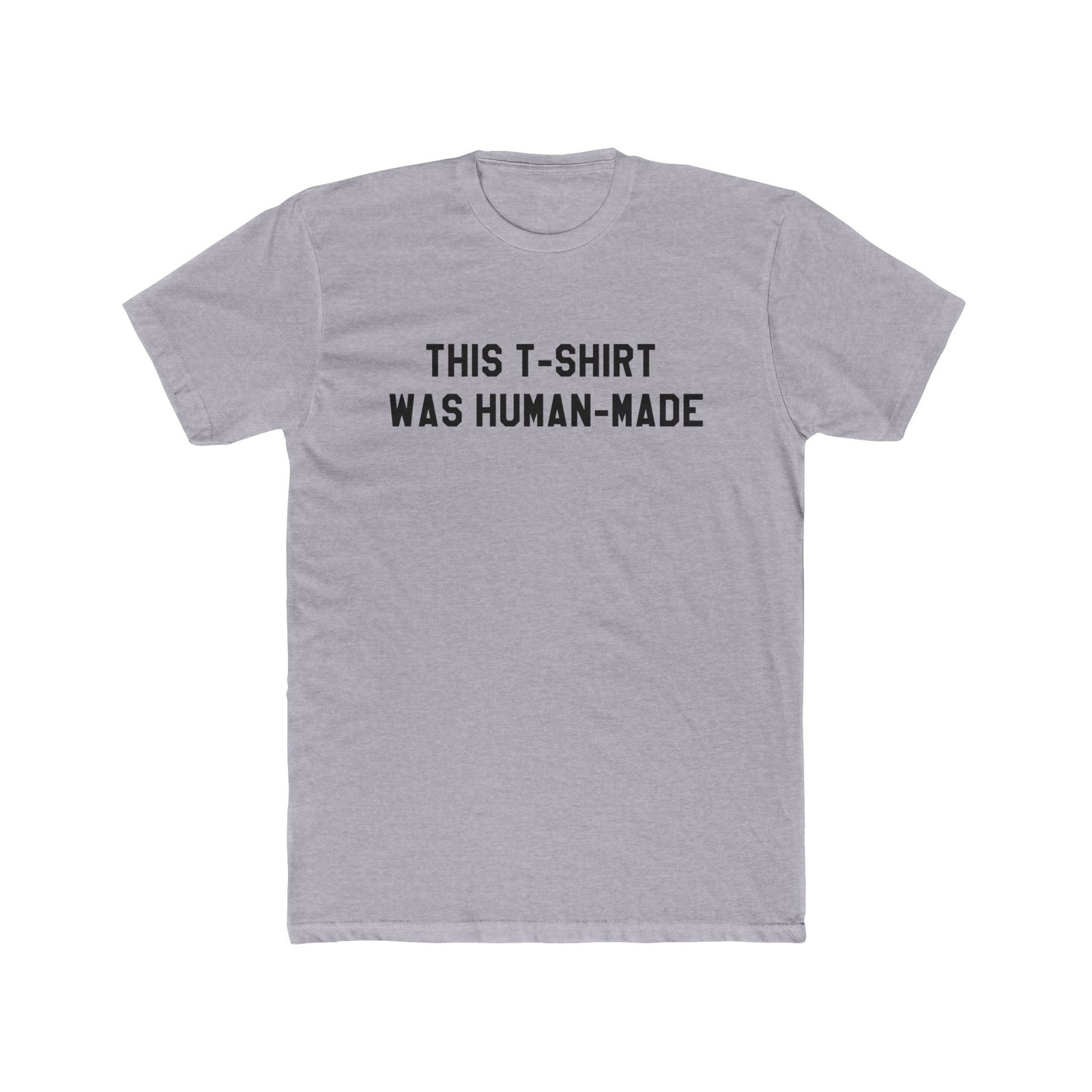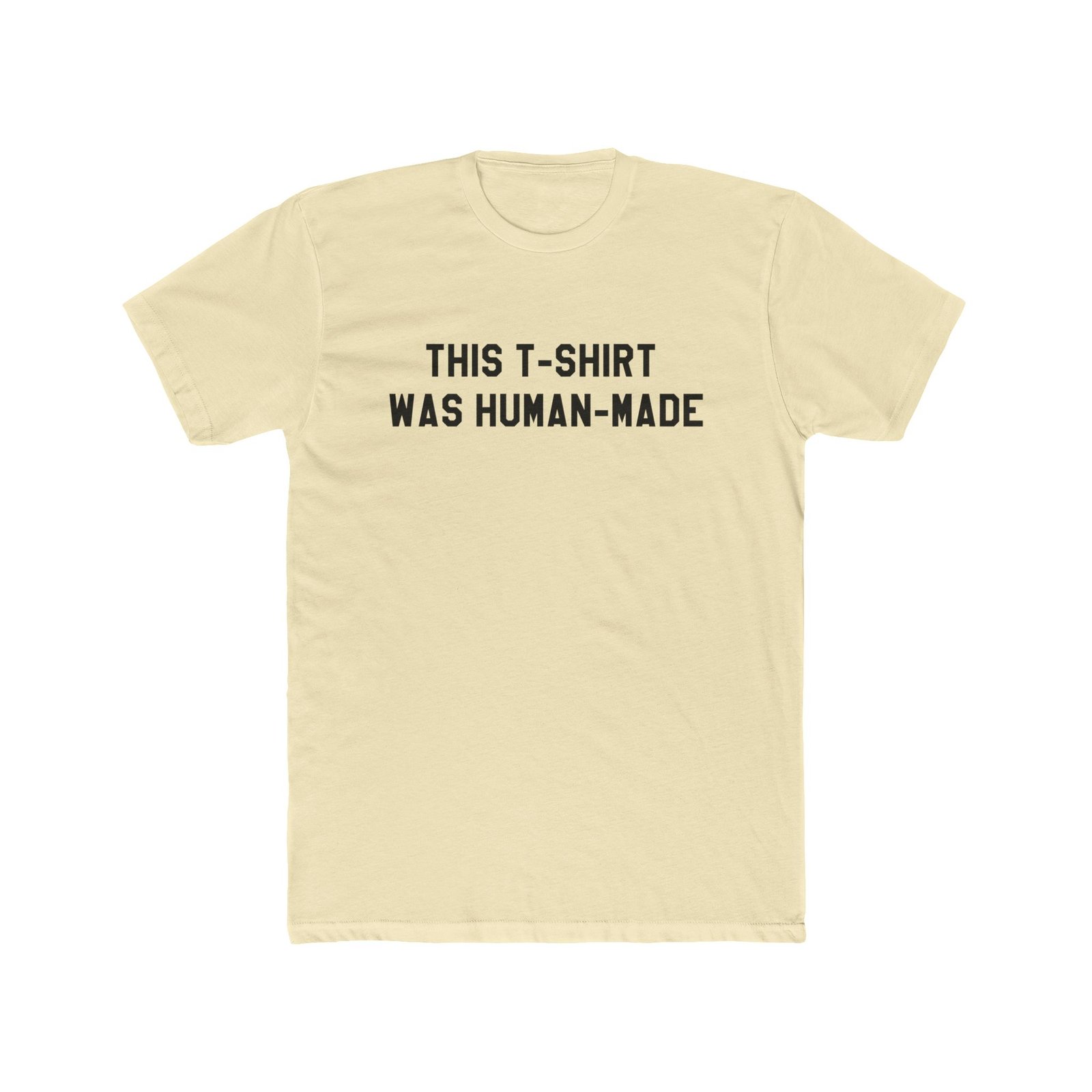 This T-Shirt Was Human-Made Shirt Aesthetic Graphic Tee, Ethical Fashion Statement Top Funny Anti-AI Slogan T-Shirt, Minimalist Streetwear Tee Shirt Premium Fitted 100% Cotton Tee