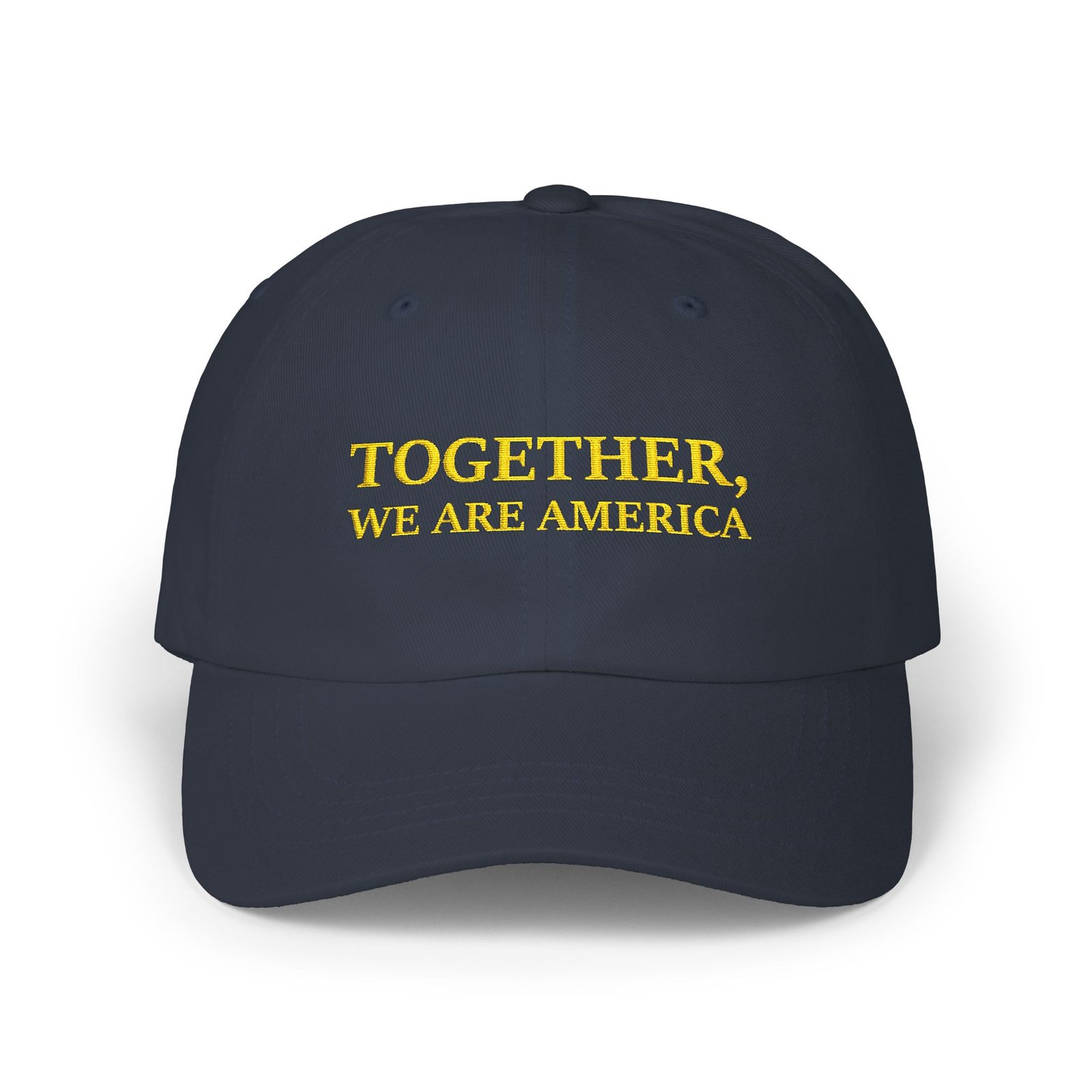 “Together, We Are America” Embroidered Cap – Black Adjustable Baseball Hat – Patriotic Unity Headwear Headwear, Adjustable Hat — Classic Embroidered Baseball Hat