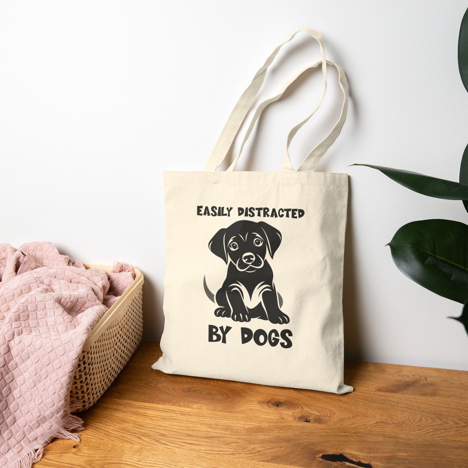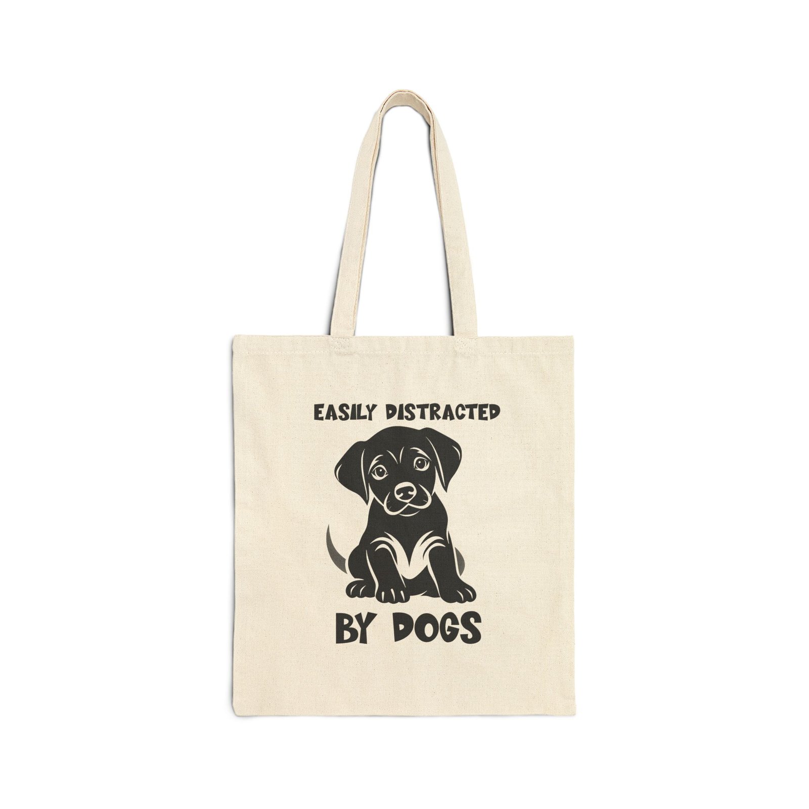Tote Bag –”Easily Distracted By Dogs” Puppy Tote Bag – Natural Canvas Pet Lover Carryall – Cute Dog Graphic Everyday Tote Gift Durable Eco-Friendly Shopping Bag