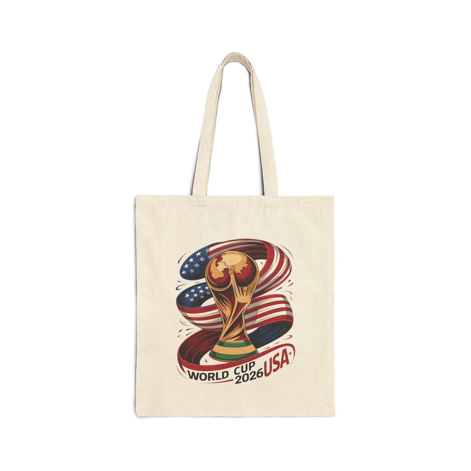 USA 2026 Soccer World Cup Fan Tote Bag – Golden Trophy & Stars and Stripes Graphic – Durable Eco-Friendly Shopping Bag