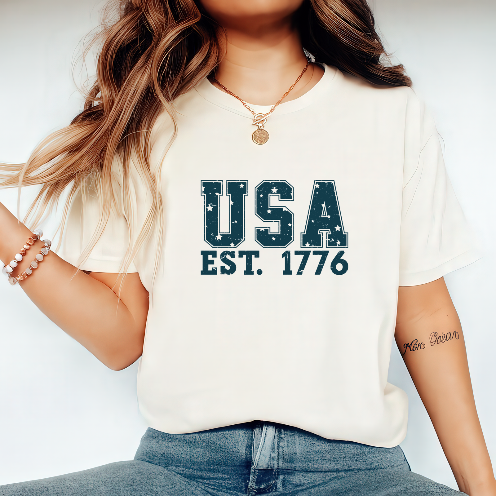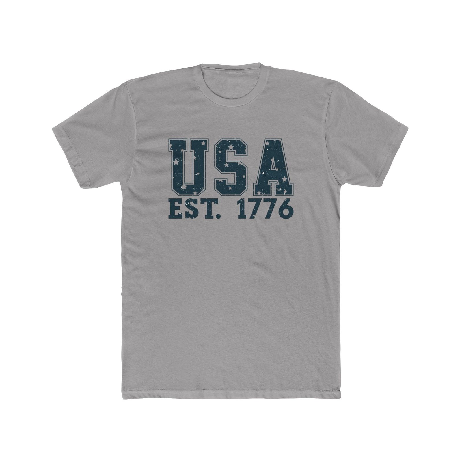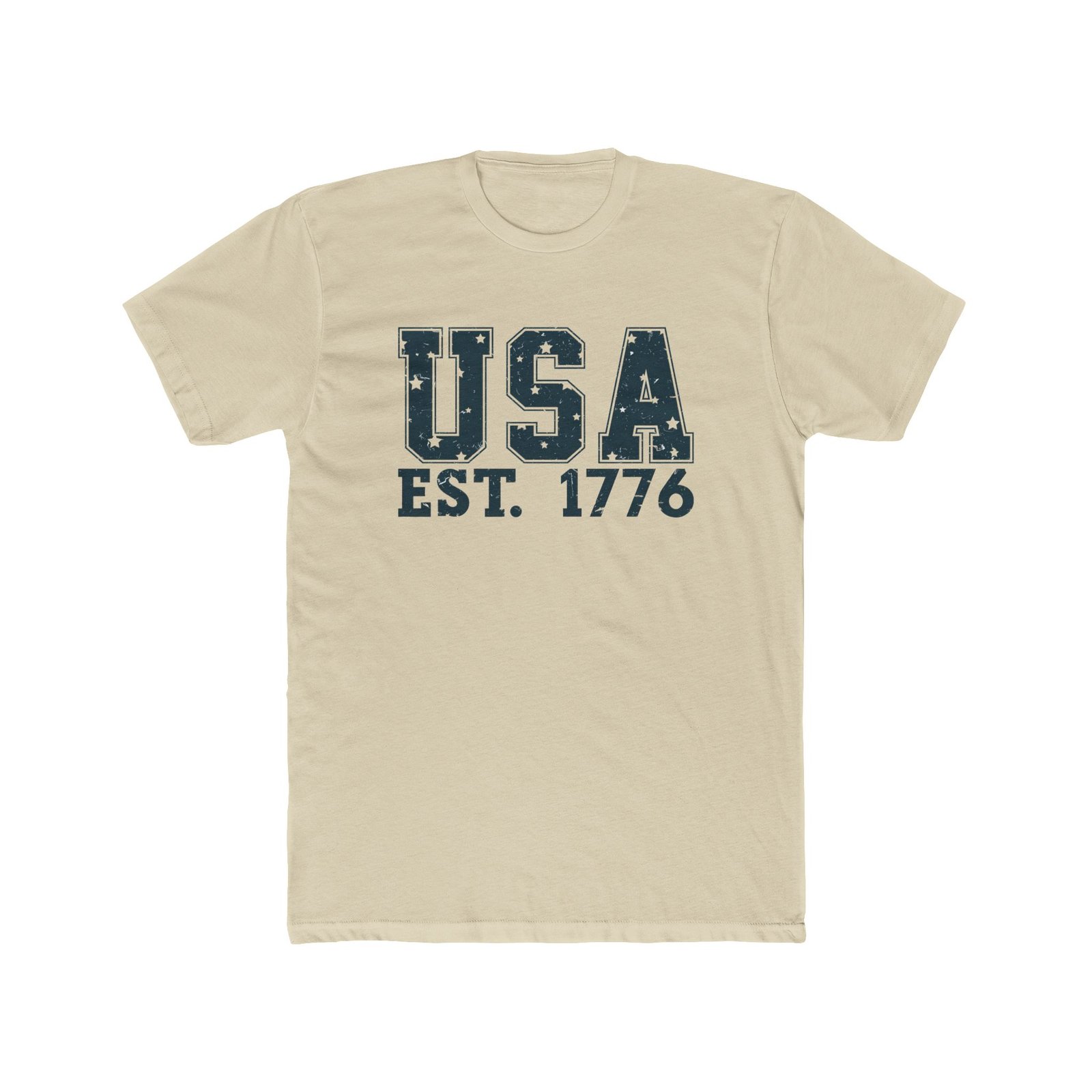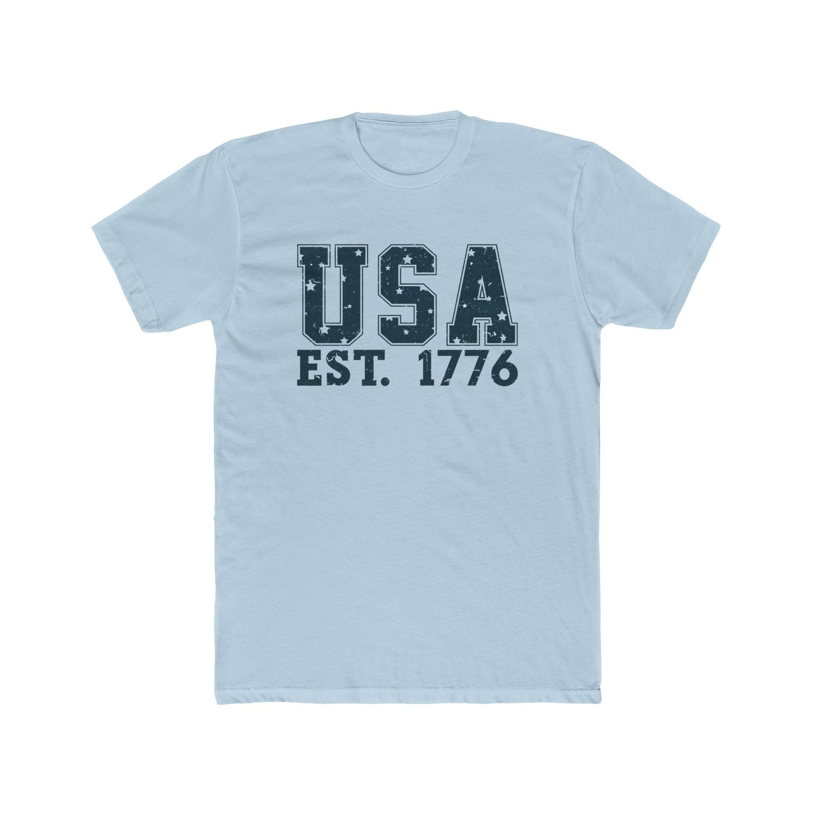 USA EST. 1776 Patriotic T-Shirt Vintage Collegiate Style Graphic – Heritage Pride Tee Unisex Tee Shirt Premium Fitted 100% Cotton Tee