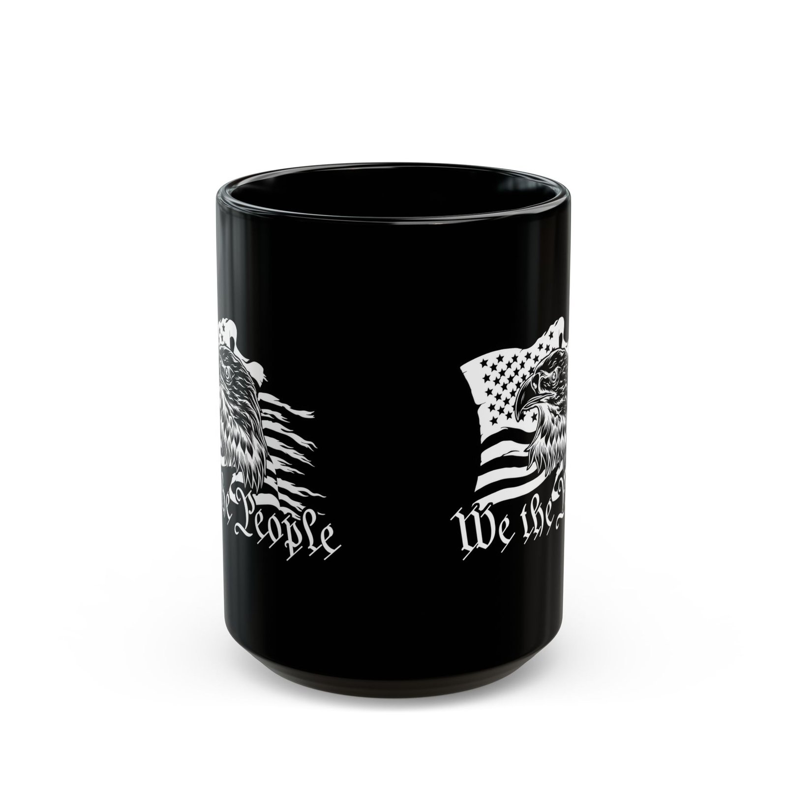 We The People Mug, Patriotic 15oz Coffee Cup, American Eagle Black Mug, USA Flag Ceramic Mug, Freedom Inspired Drinkware, Large Patriotic Gift.
